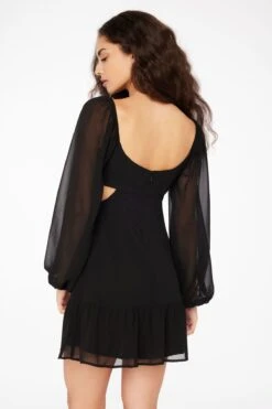 This is a feminine fit & flare mini dress with a cinched waist and a flowy skirt.
