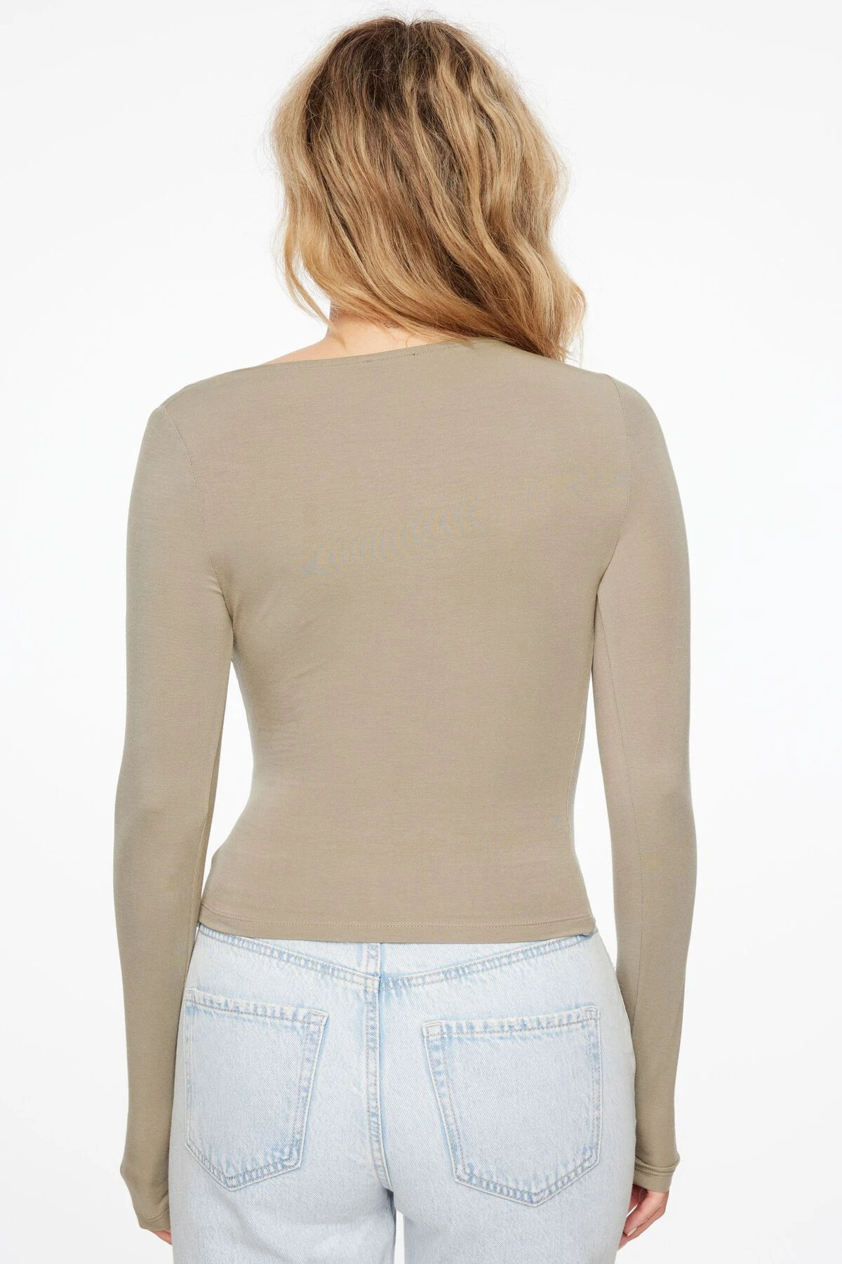 Dynamite Long Sleeve Jersey Draped Top In Vintage Khaki - Image 4