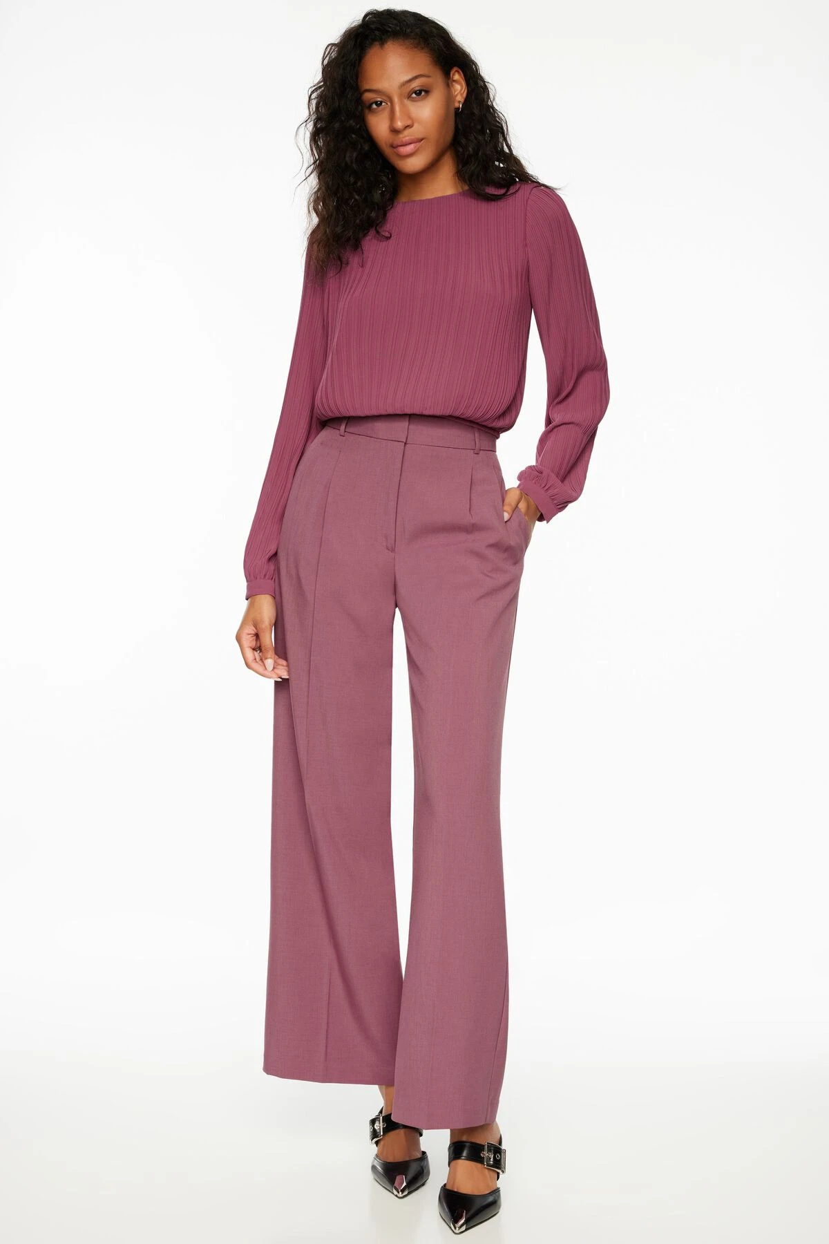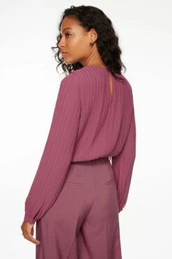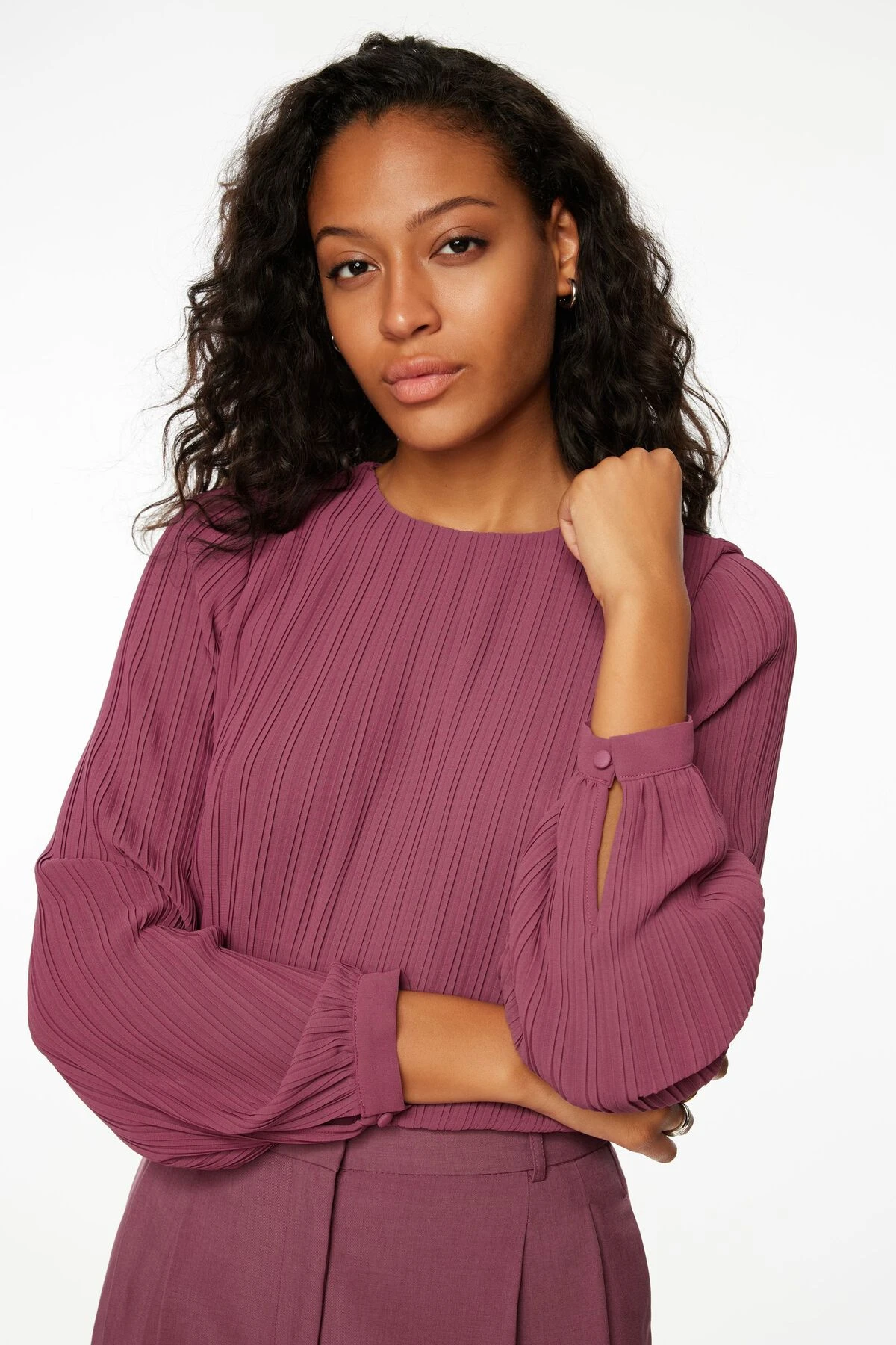 This is a balloon sleeve pleated top – Designed with a textured fabric.