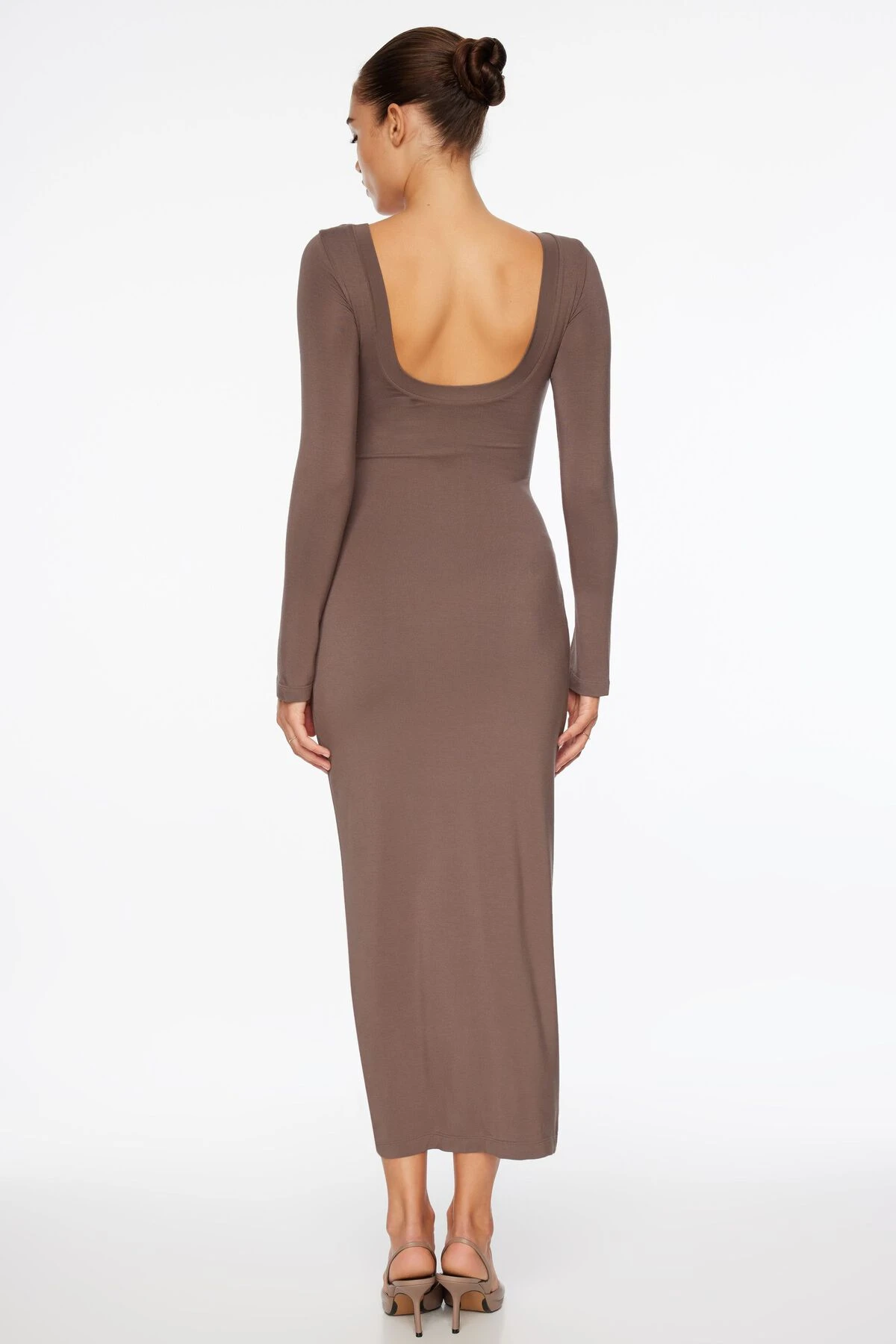 This is a jersey maxi dress that comes with a stretch for ultimate comfort.