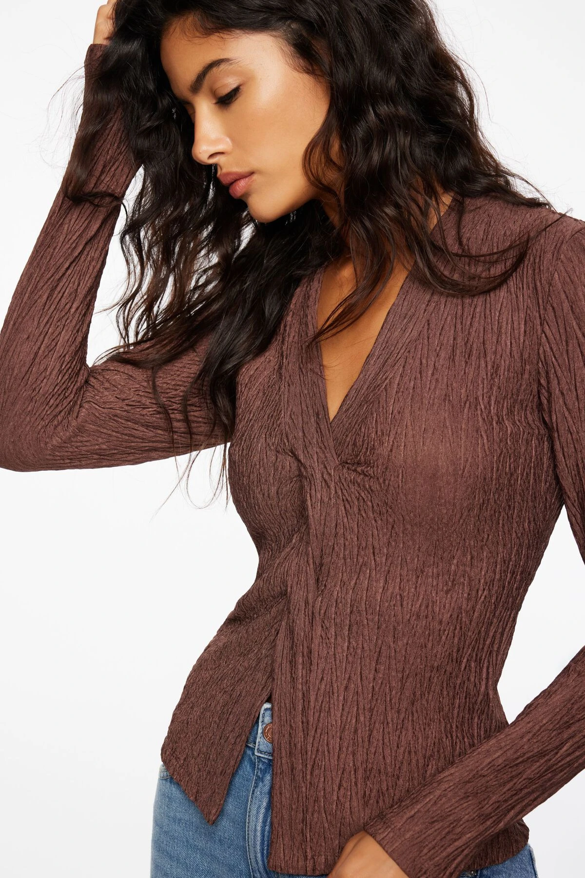This is a fly away top – Designed with a textured stretch-fabric.