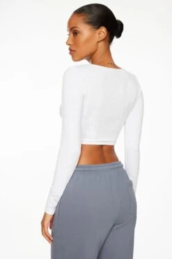 This is a cropped twist front top – Designed with a lightweight stretch-knit fabric.