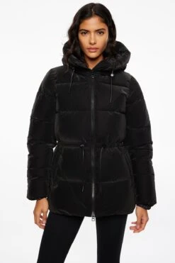 - Adjustable elasticized cinched waist to reduce wind flow