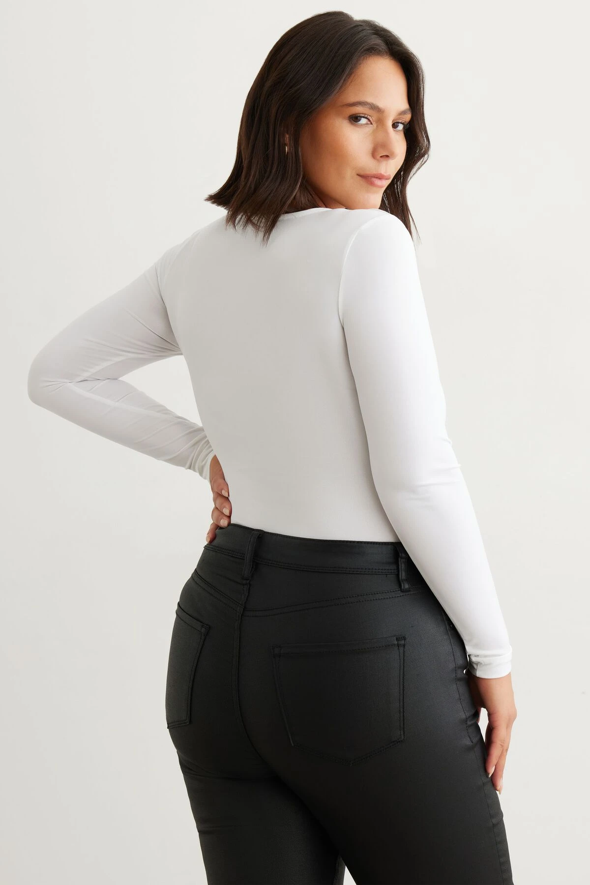 The Maren sculpting bodysuit is double lined, body hugging, and offers comfy compression. Made with a luxurious touch and high-stretch fabrics.