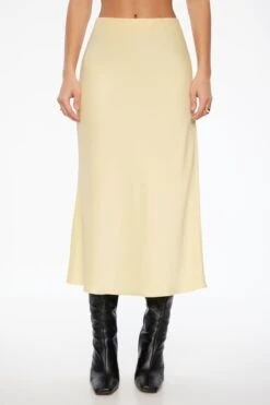 Let me introduce you to Melody – She is a satin slip midi skirt with a flowy skirt and a lustrous touch.