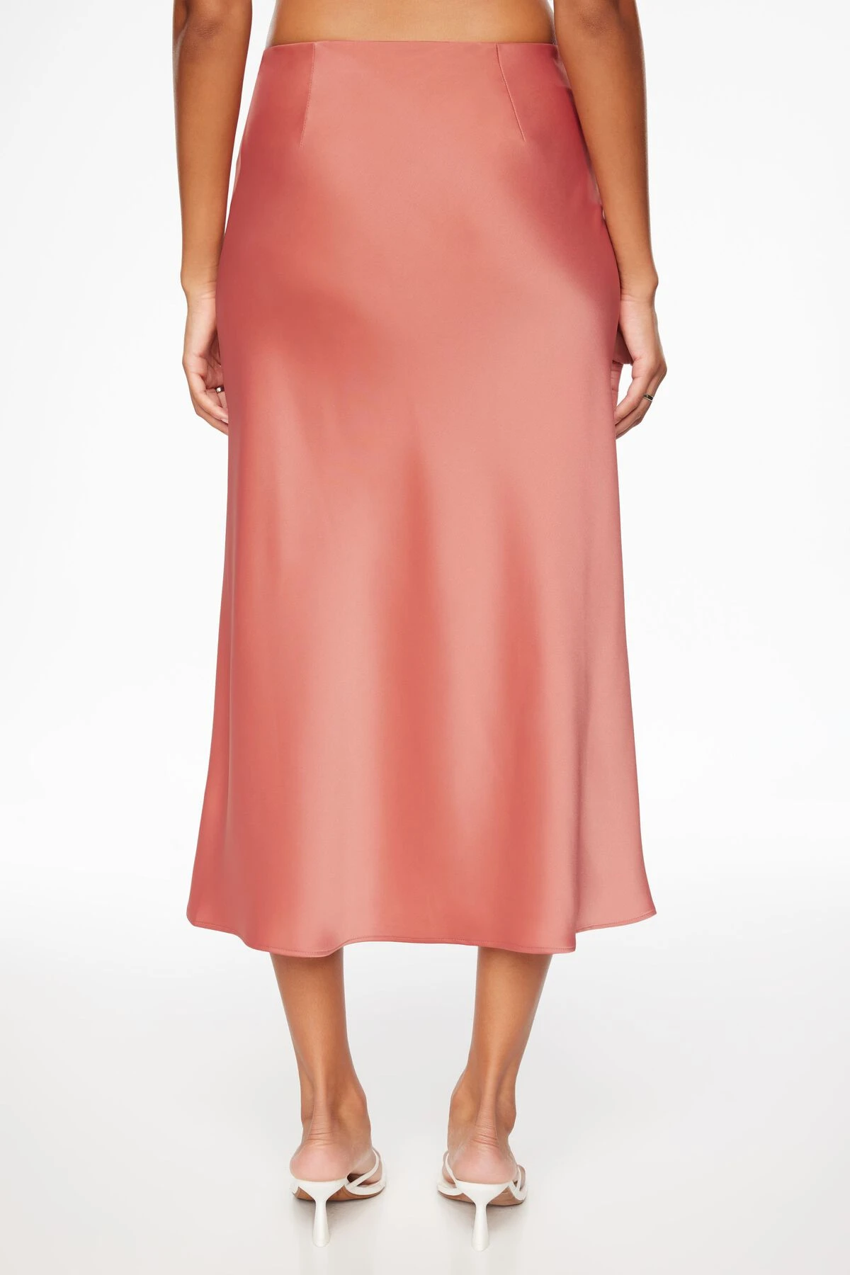 Let me introduce you to Melody – She is a satin slip midi skirt with a flowy skirt and a lustrous touch.