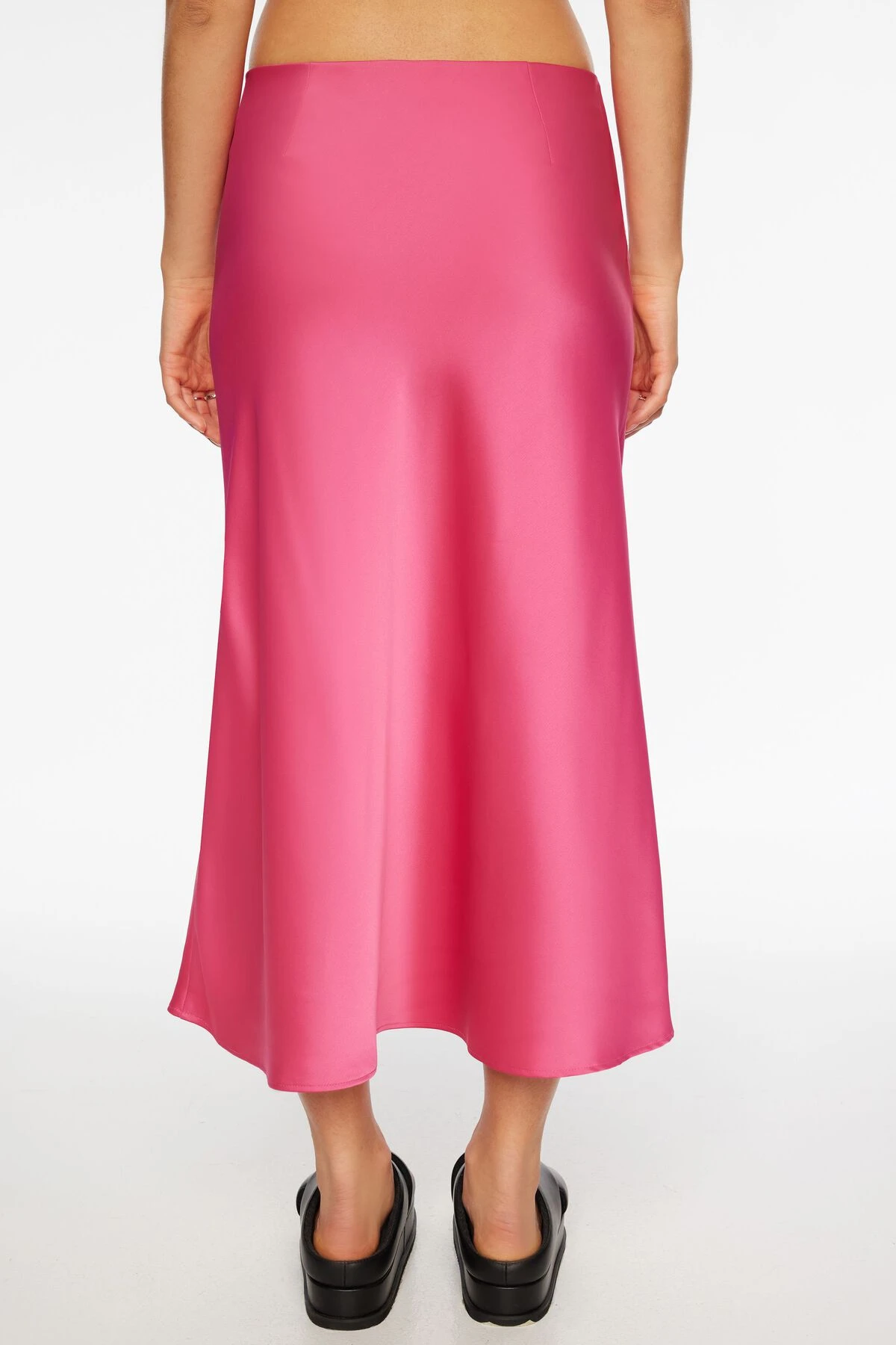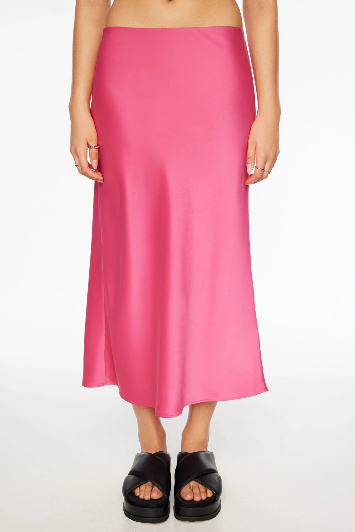 Dynamite Melody Satin Slip Midi Skirt In Gala Pink