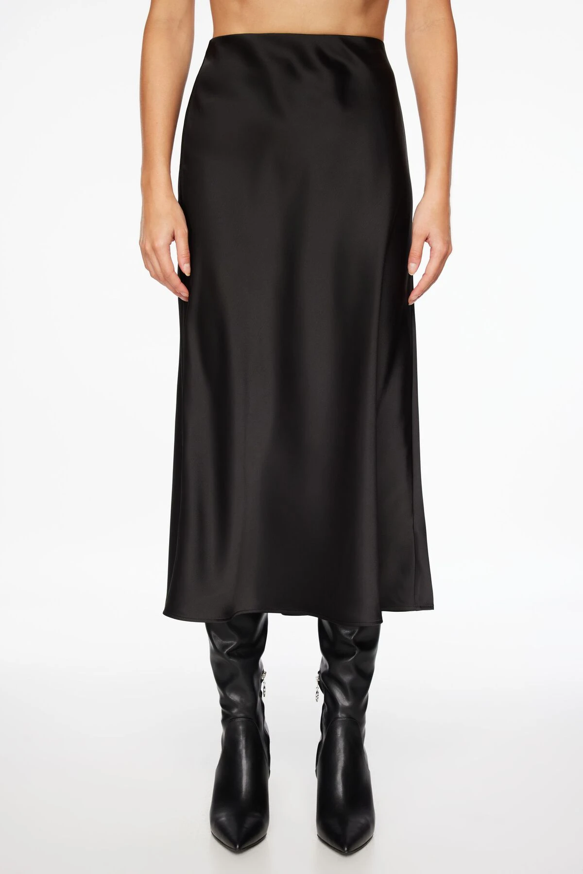 Let me introduce you to Melody – She is a satin slip midi skirt with a flowy skirt and a lustrous touch.