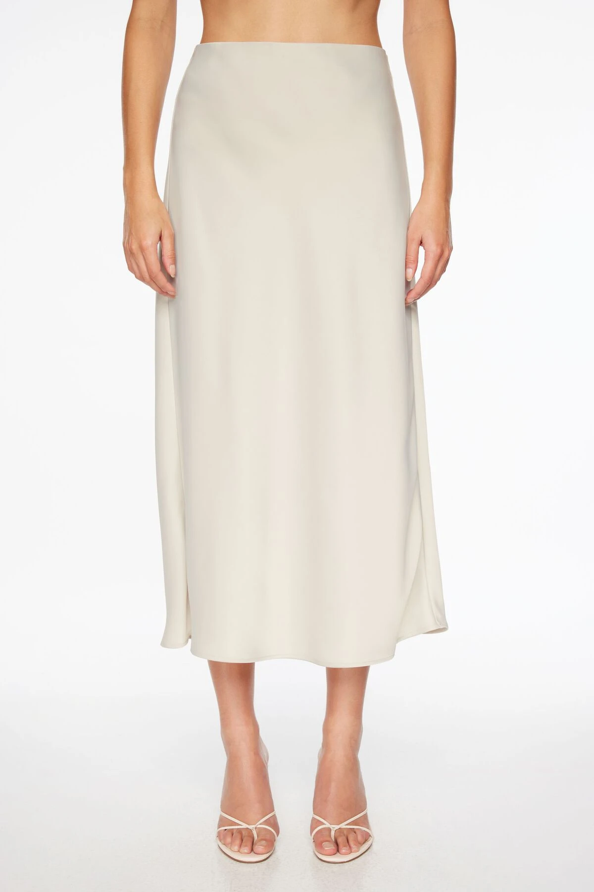 Dynamite Melody Satin Slip Midi Skirt In Pebble Gray - Image 2