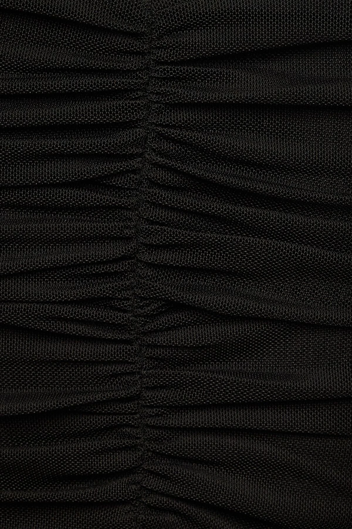 This is a mesh bustier top – It is designed with a semi-sheer detail and a stretch ruched fabric.