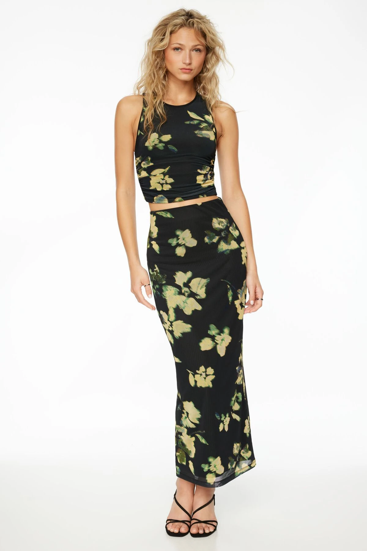 This is a double layered – mesh and stretch fabric tank top. Designed with a floral print.