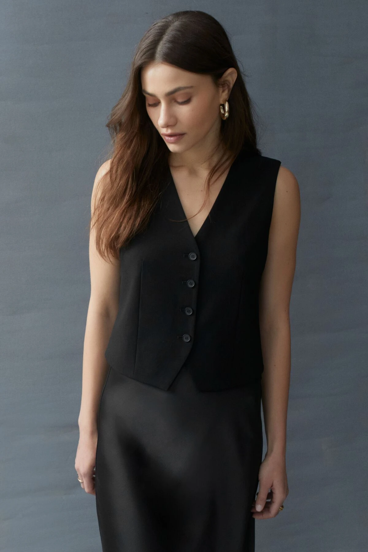 Meet Millie- A button up vest – Designed with a tailored wool blend fabric.