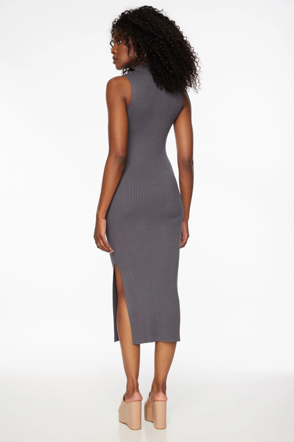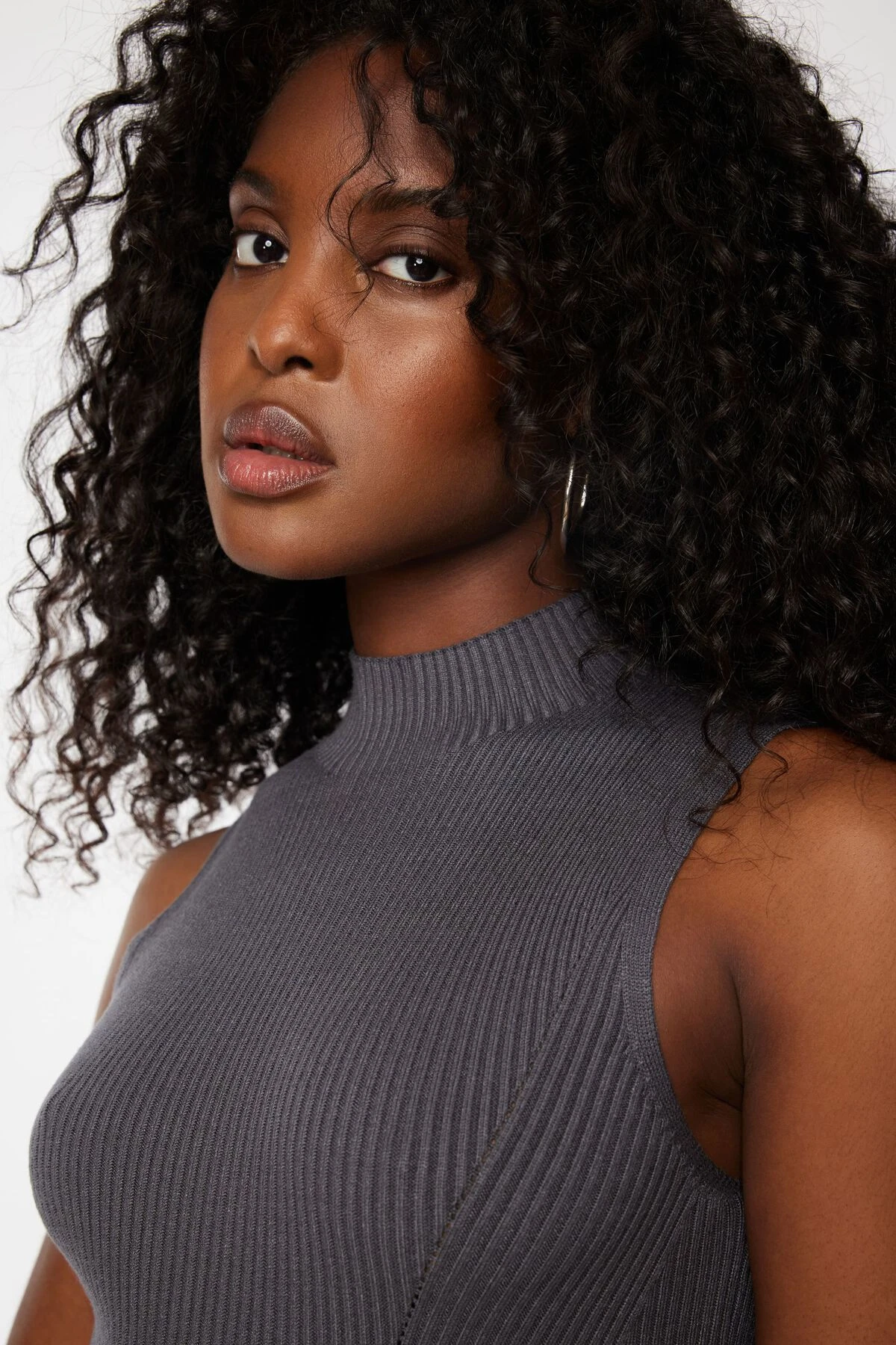 This is a fitted sleeveless midi dress – Designed with smooth yarn fabric.
