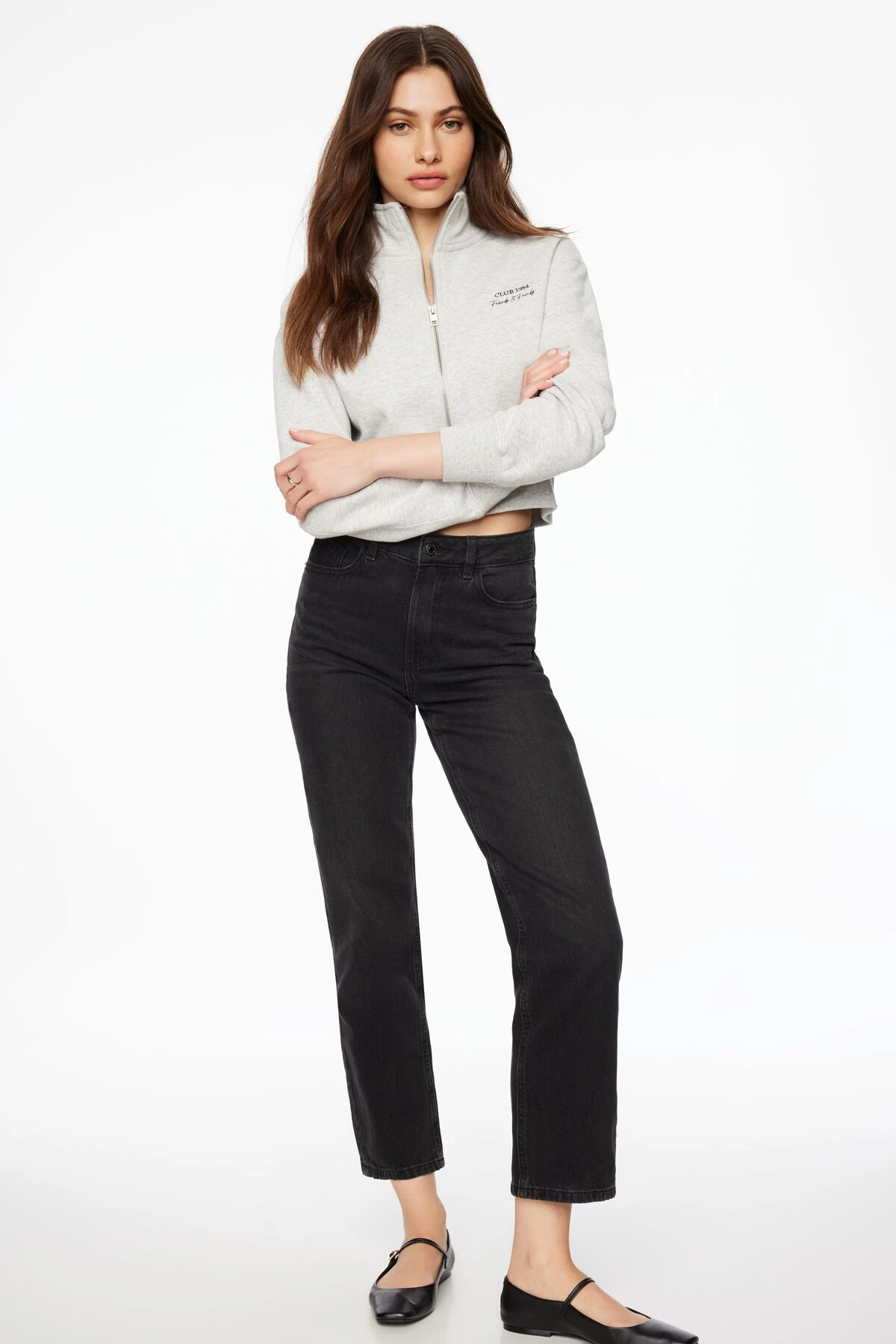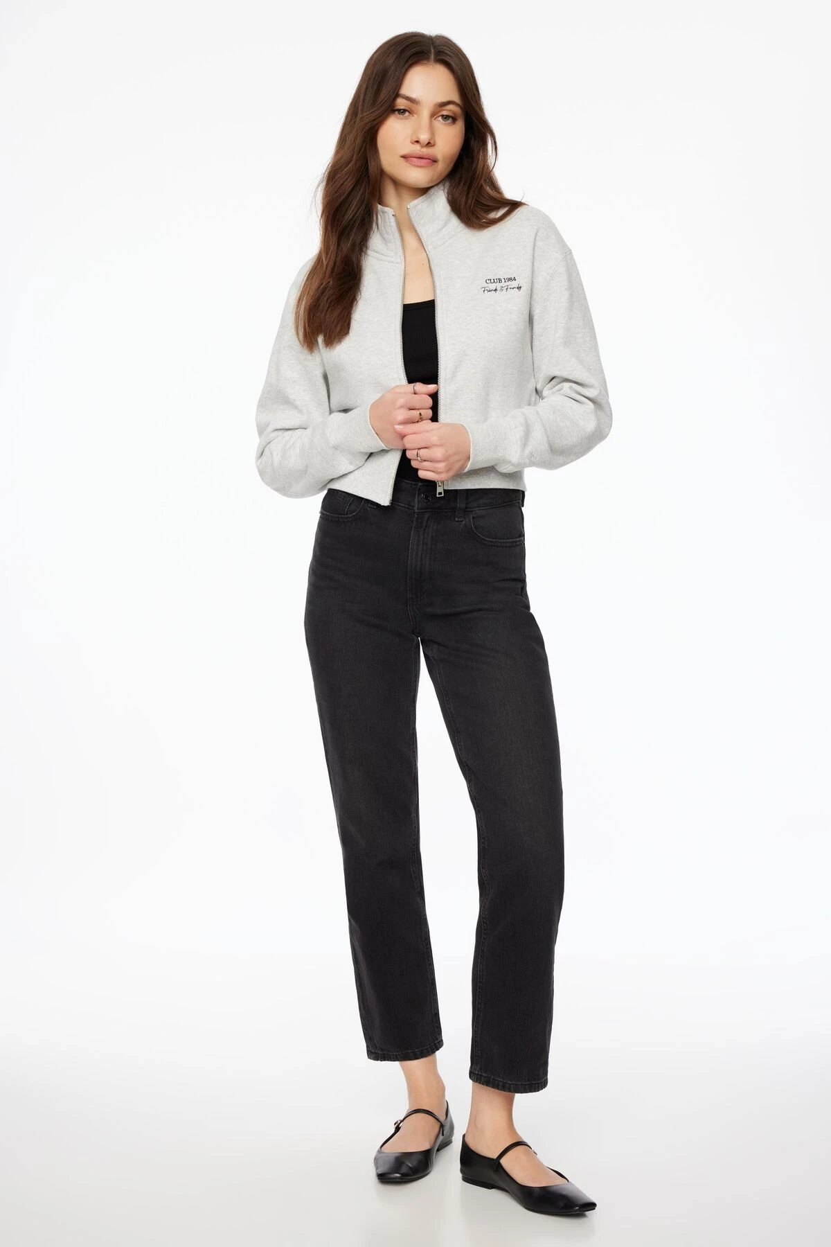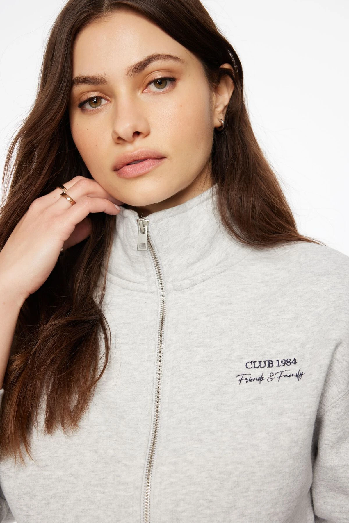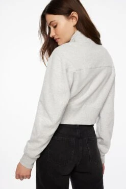 Cozy up in this mock neck fleece sweatshirt – Designed with a relaxed fit and graphic embroidered at the front.