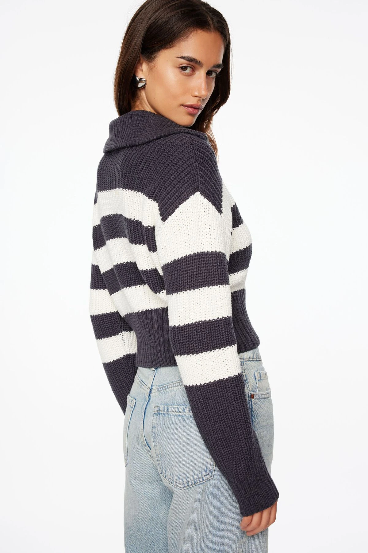 Dynamite Mock Neck Zip Sweater In Odyssey Grey & Snow White