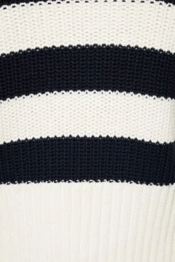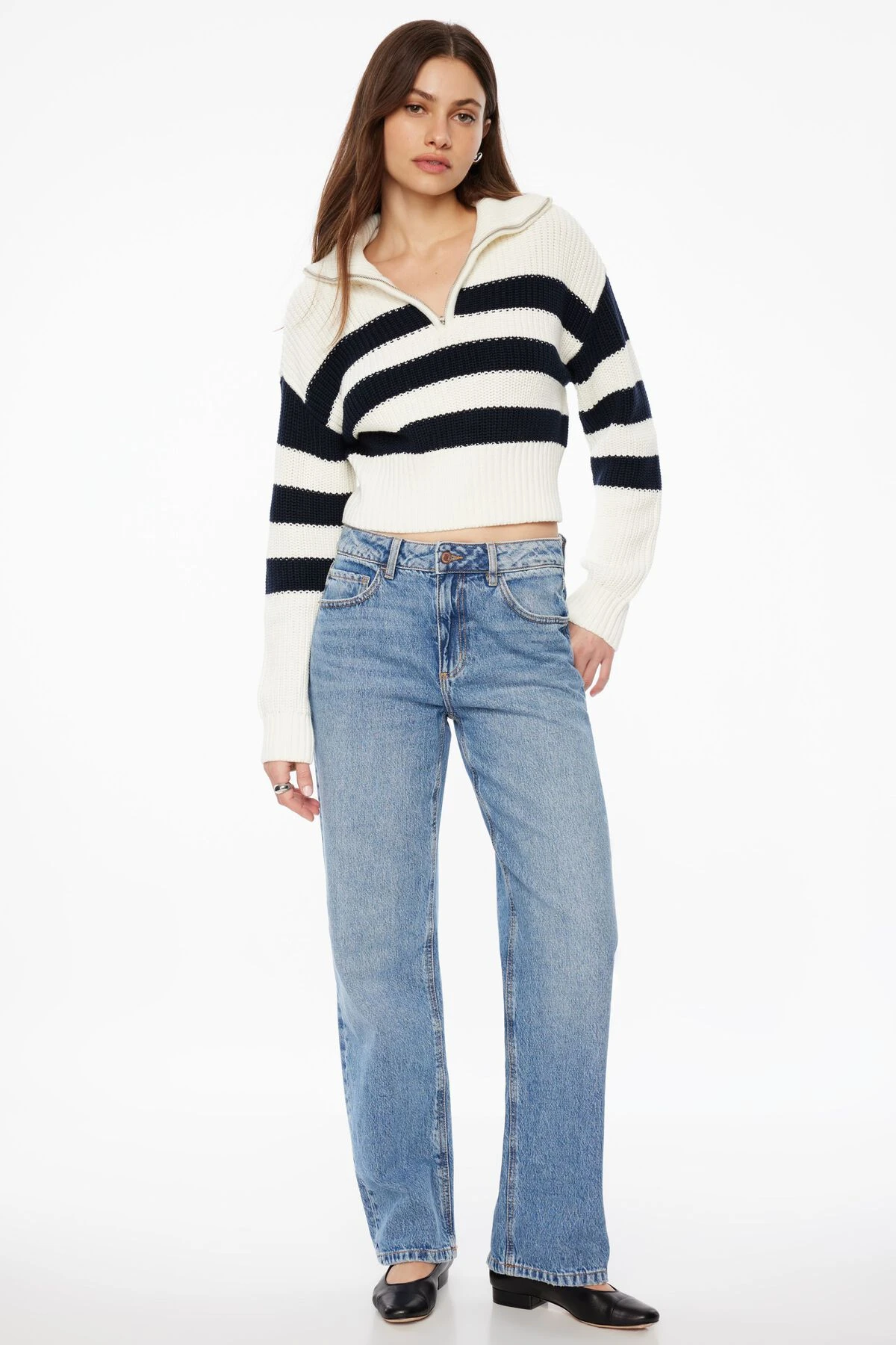 Dynamite Mock Neck Zip Sweater In Snow White & Sky Captain Stripes