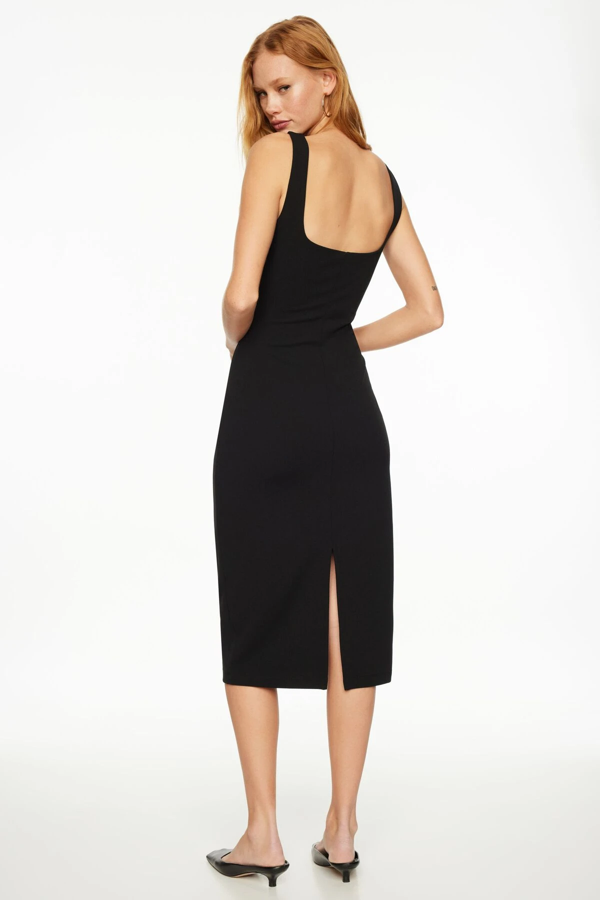 Meet Nyka, a body-contouring midi dress with a stretchy fabric.