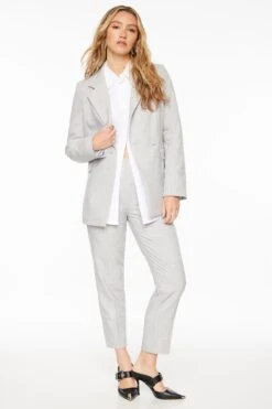 This a classic tailored blazer – designed with a cinched waist for an hourglass effect.