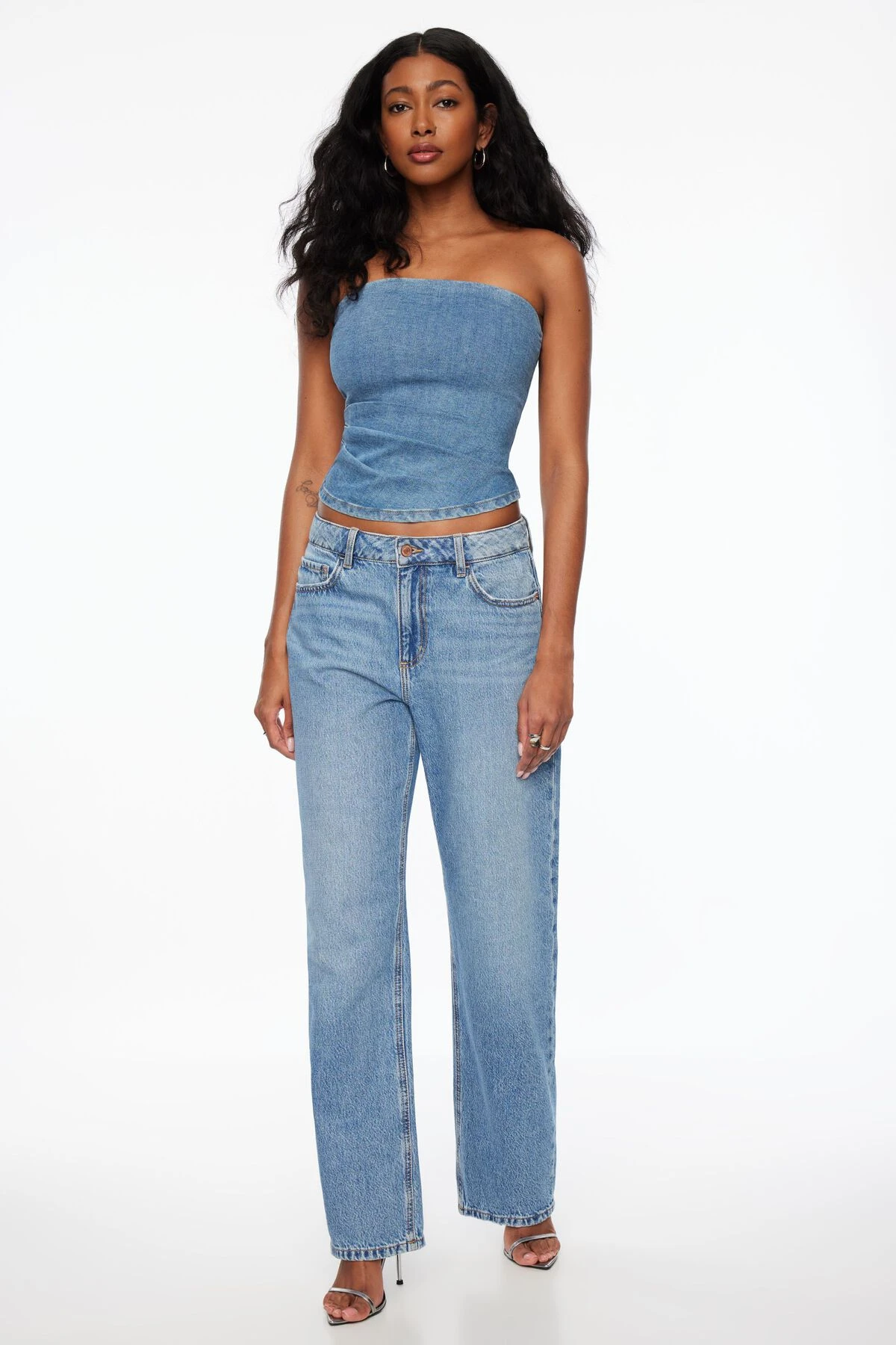 Delve into denim with this pleated bustier top – Made to be fitted with a stretch,