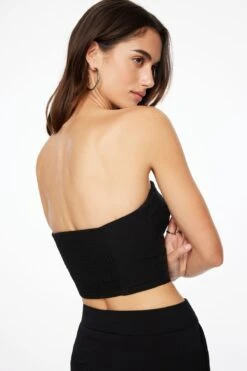 This is a strapless pleated linen tube top – Designed with a smocked back and fitted to accentuate your form.
