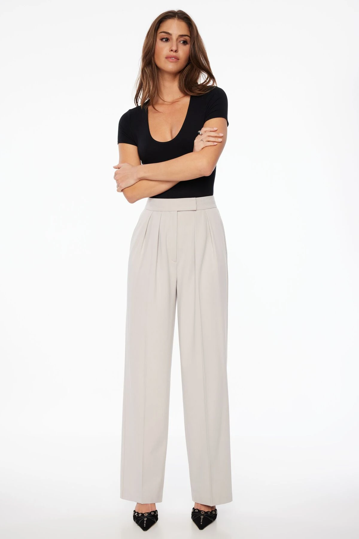 This is a pleated straight-leg twill pant – Designed with a relaxed fit and stretch for an effortless look.