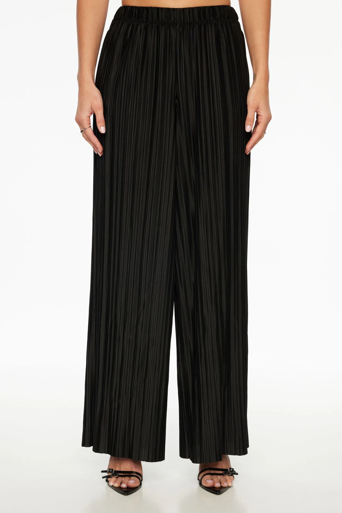 This is a plissé wide leg pant – Designed with a textured stretch fabric.