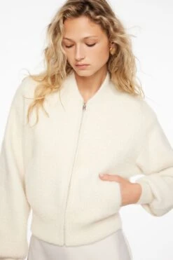 - Ribbed cuffs and hem