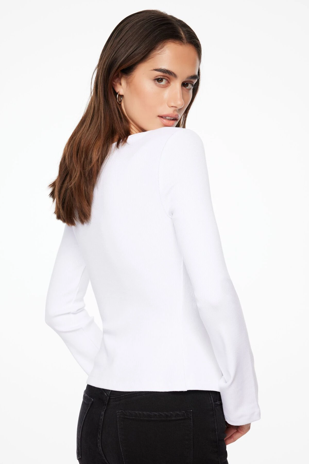 Dynamite Ribbed Long Sleeve Fly Away Top In Bright White - Image 4