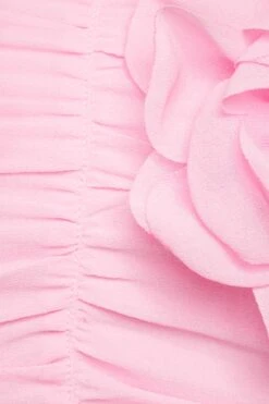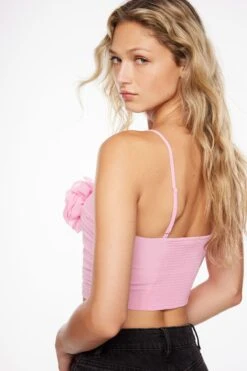 This is a ruched crop top – Designed with a rosette flower detail.