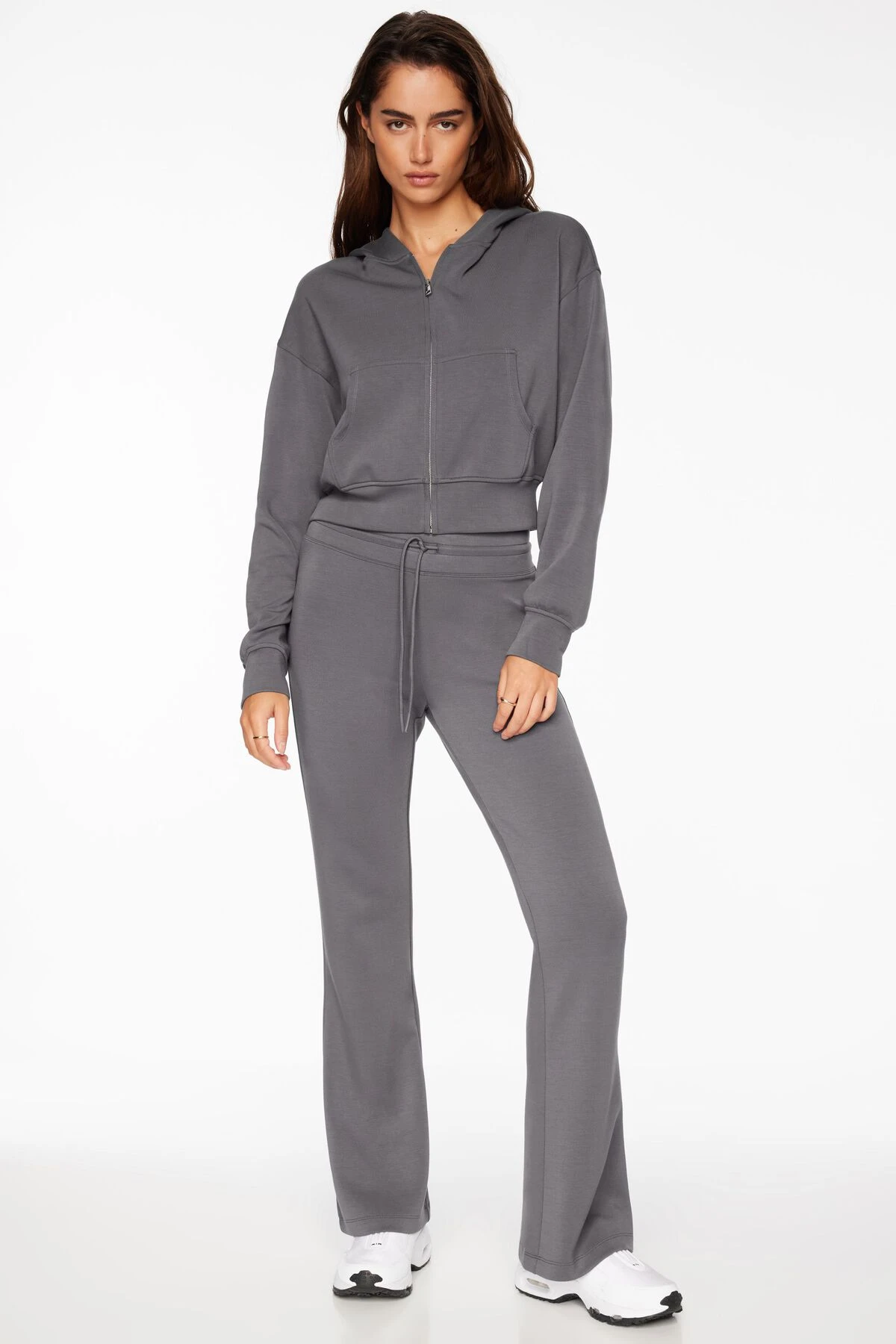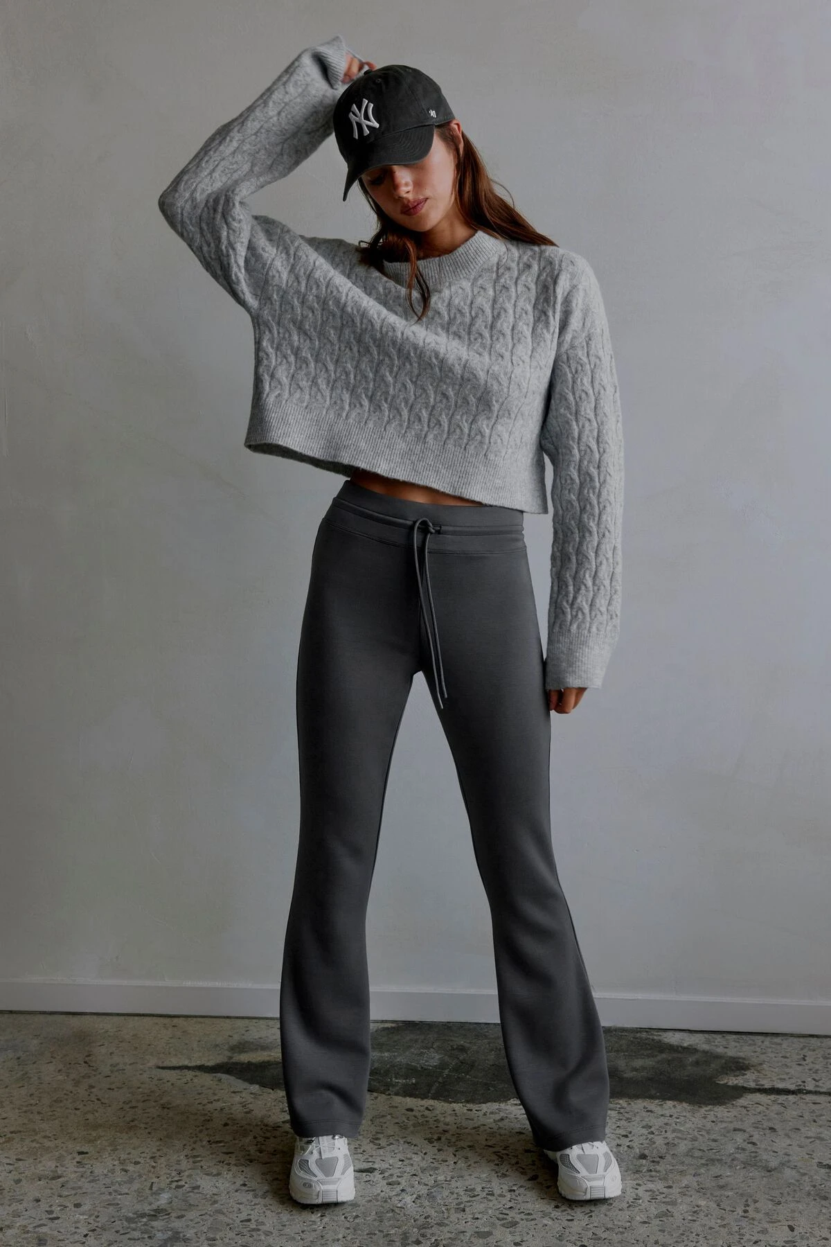 A high-rise jogger with a flared leg. Made with lightweight scuba fabric, that’s cool to the touch, sleek, and wrinkle resistant.