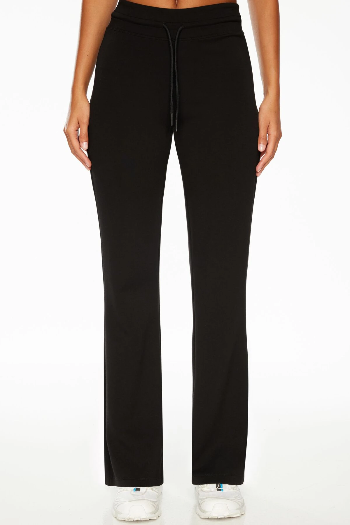 A high-rise jogger with a flared leg. Made with lightweight scuba fabric, that’s cool to the touch, sleek, and wrinkle resistant.