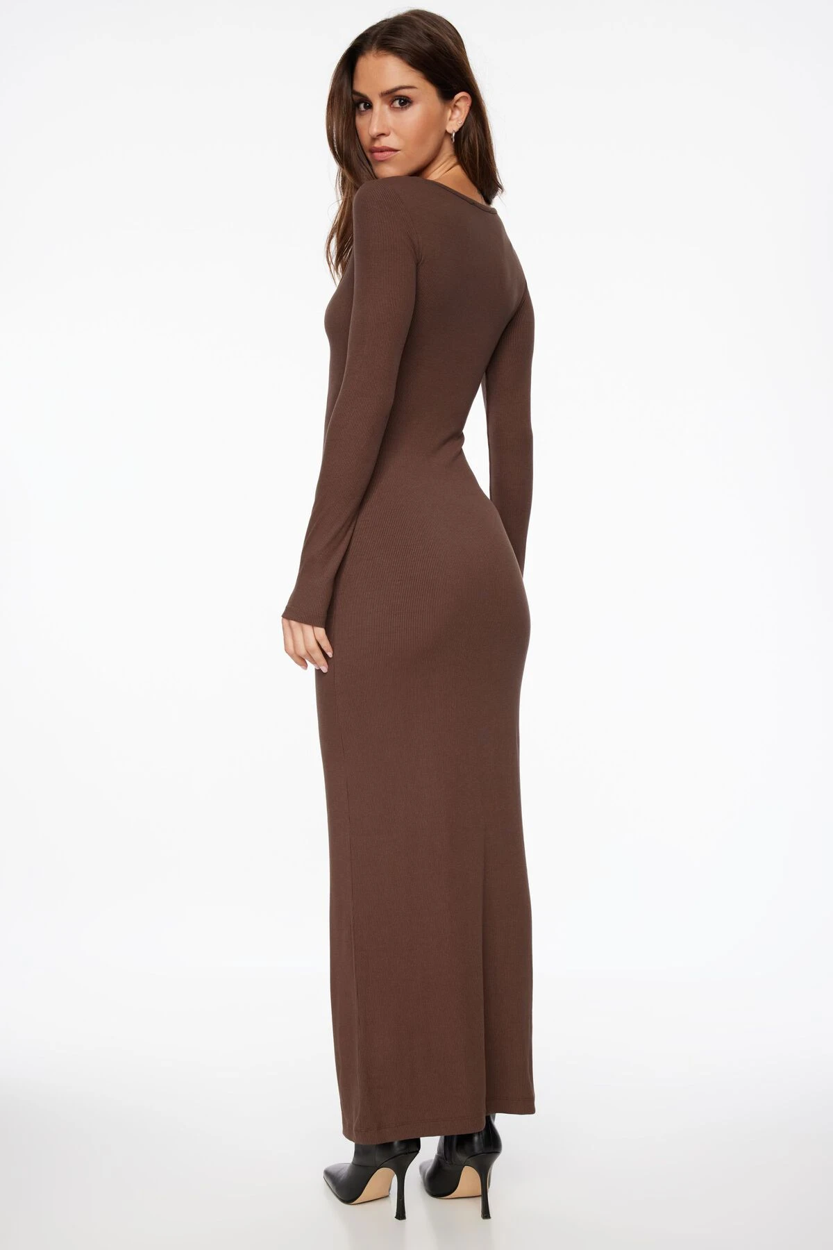 This is a long sleeve maxi dress – Designed with a soft stretch fabric that contours your shape effortlessly.