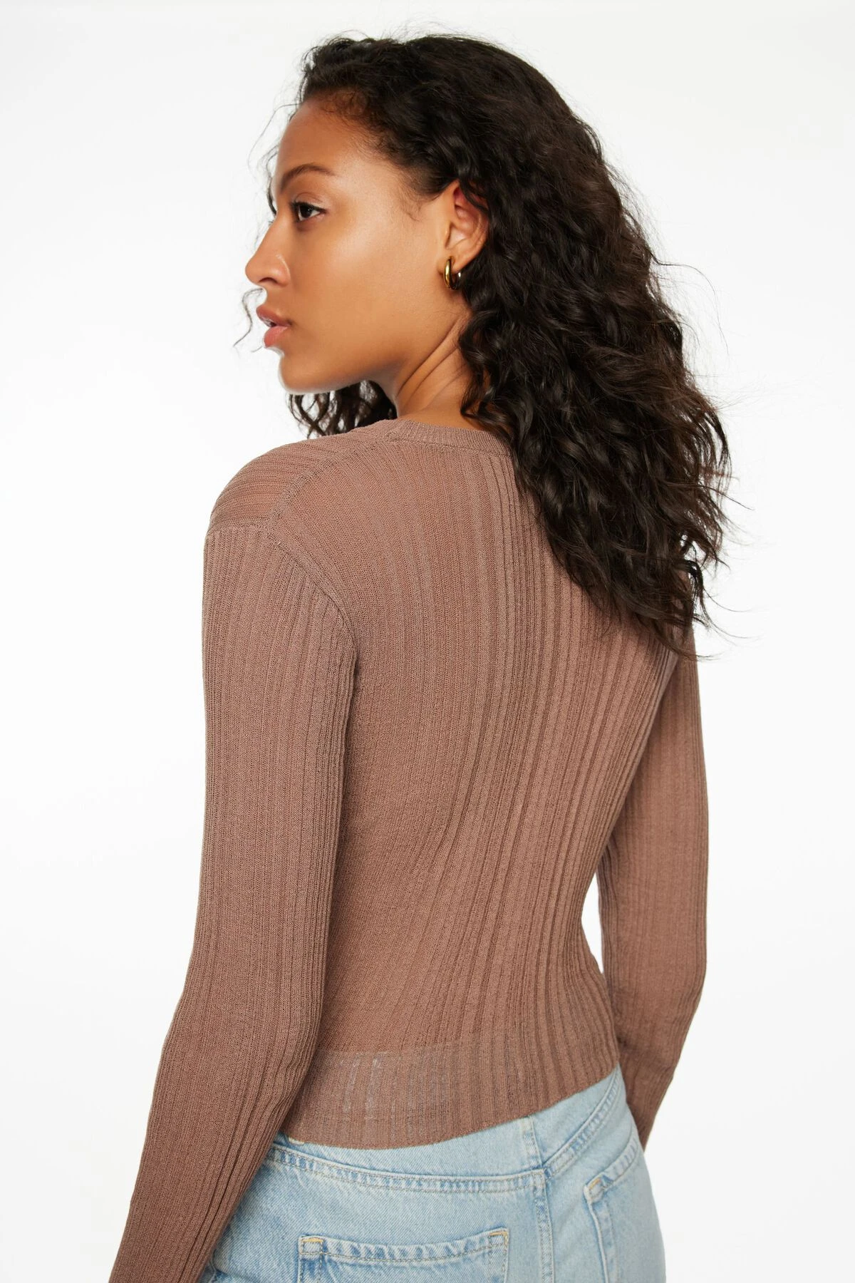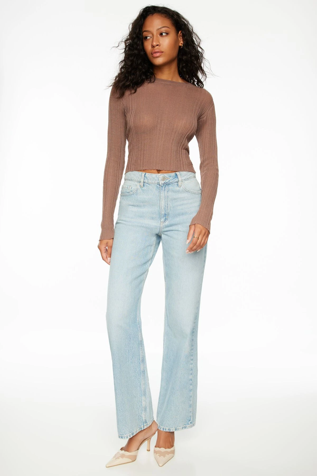 This is a sheer long sleeve top with a high neckline – Designed with a lightweight mesh fabric.