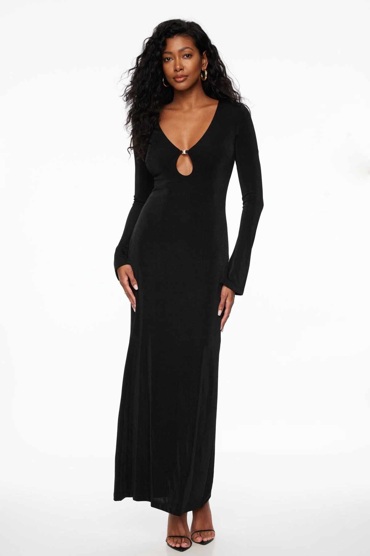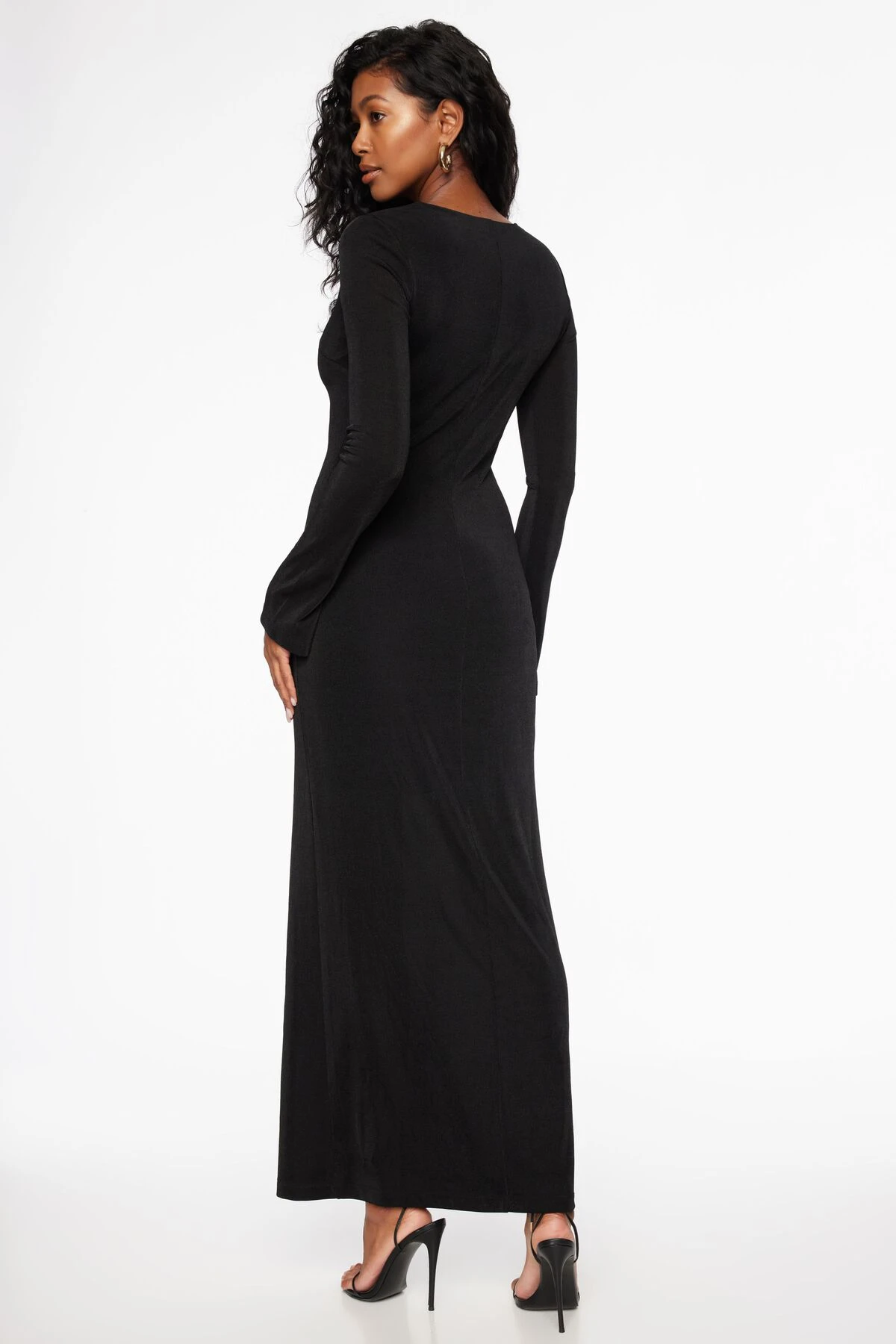 Slip into this jersey dress. Designed with a stretch and fitted to accentuate your form.