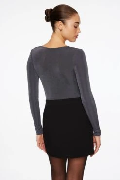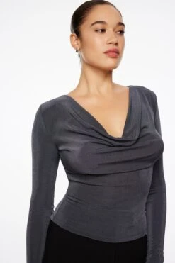 Dynamite Slinky Long Sleeve Cowl Neck Top In Turbulence Gray