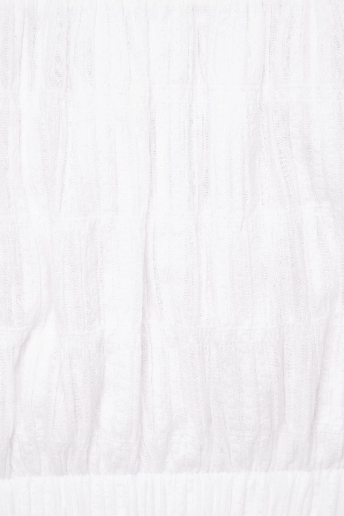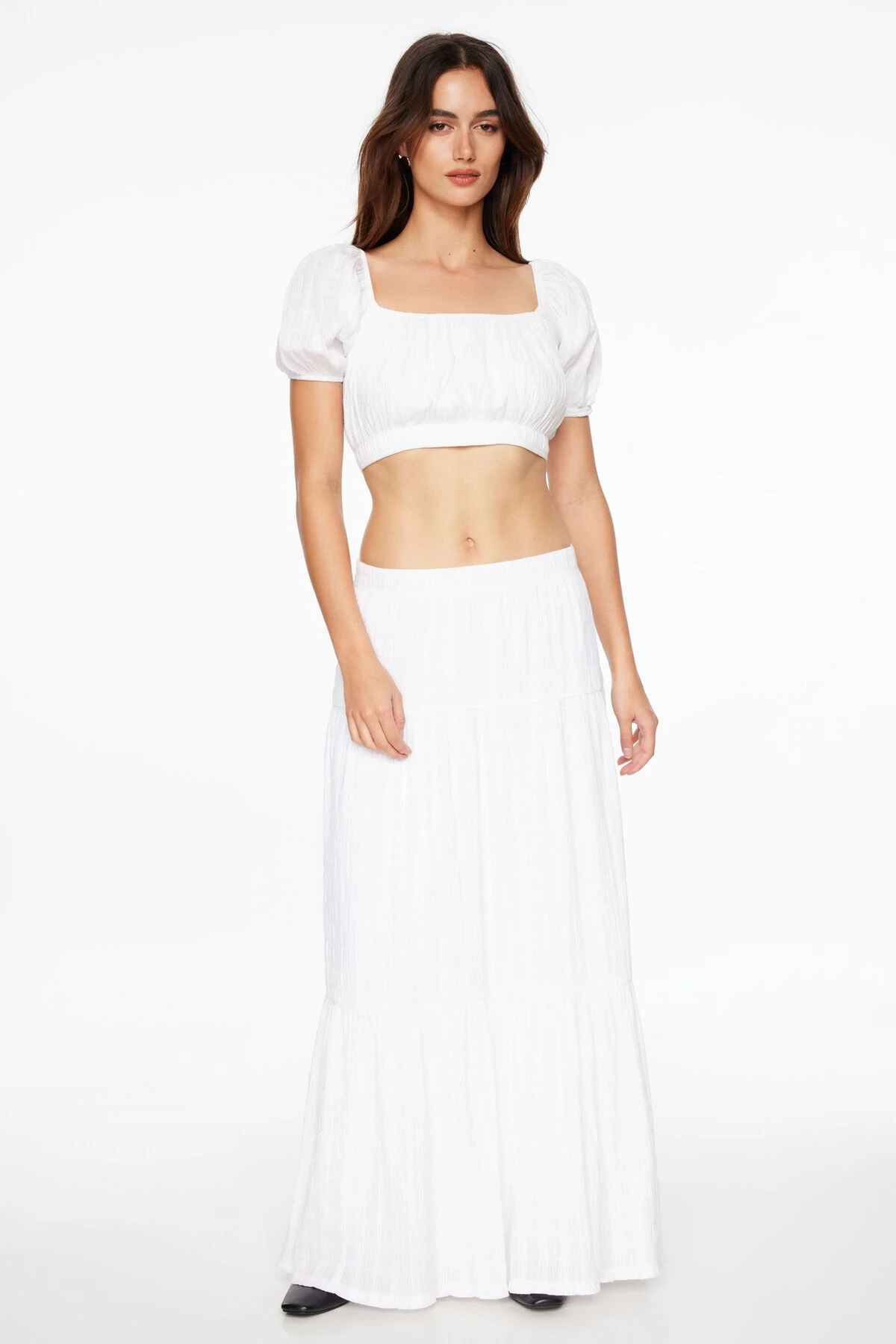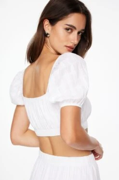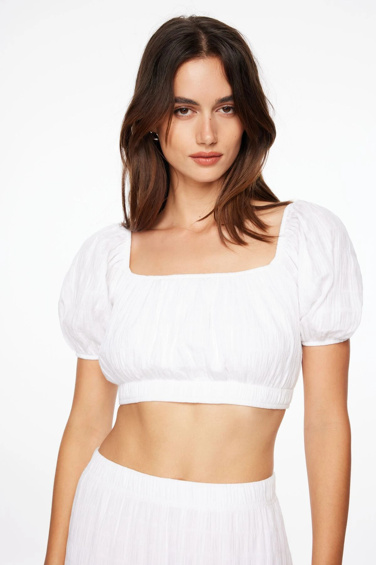 Easy and breezy, this lightweight smocked crop top is designed with puff sleeves.