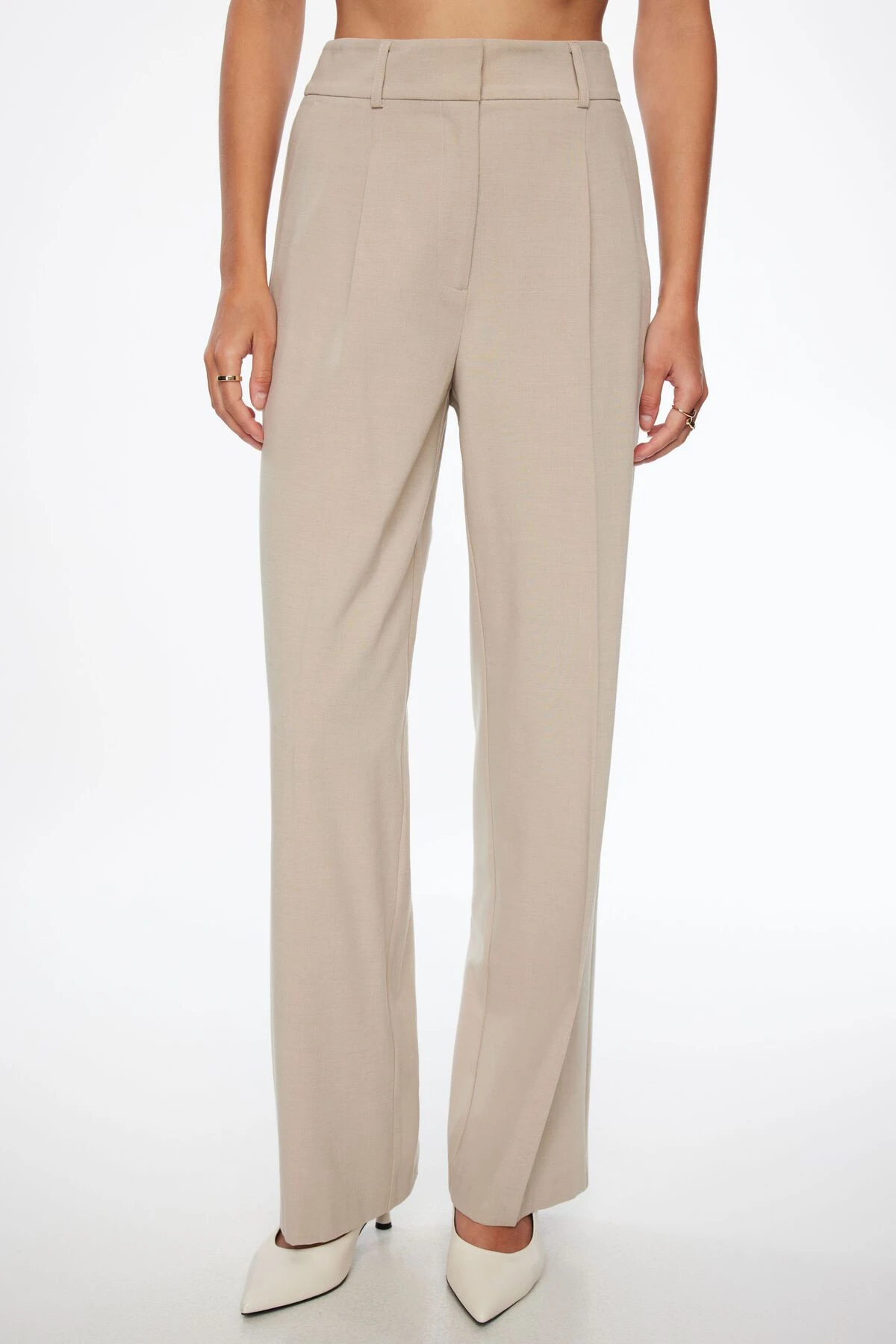 Dynamite Sofia Pleated Straight Leg Pants In Mocha Cream Beige