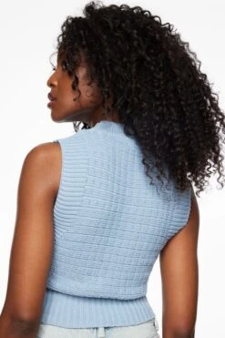 This a stitched sleeveless sweater top, a classic addition to any outfit. Made with soft and comfortable fabric.