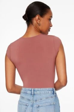 Dynamite Tana Sculpt Short Sleeve Square Neck Bodysuit In Deco Rose