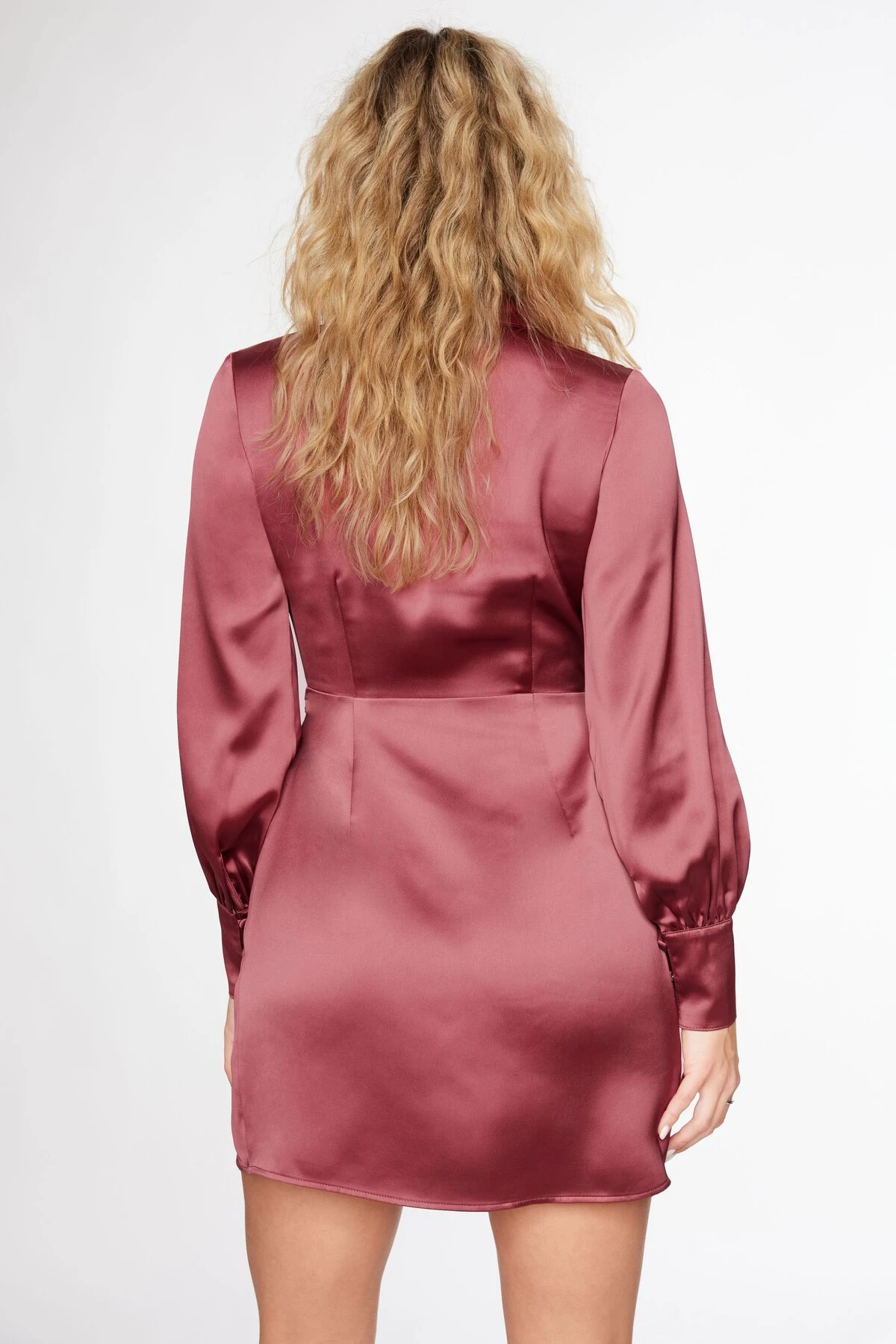This is a wrap dress – Designed with a lustrous satin fabric.