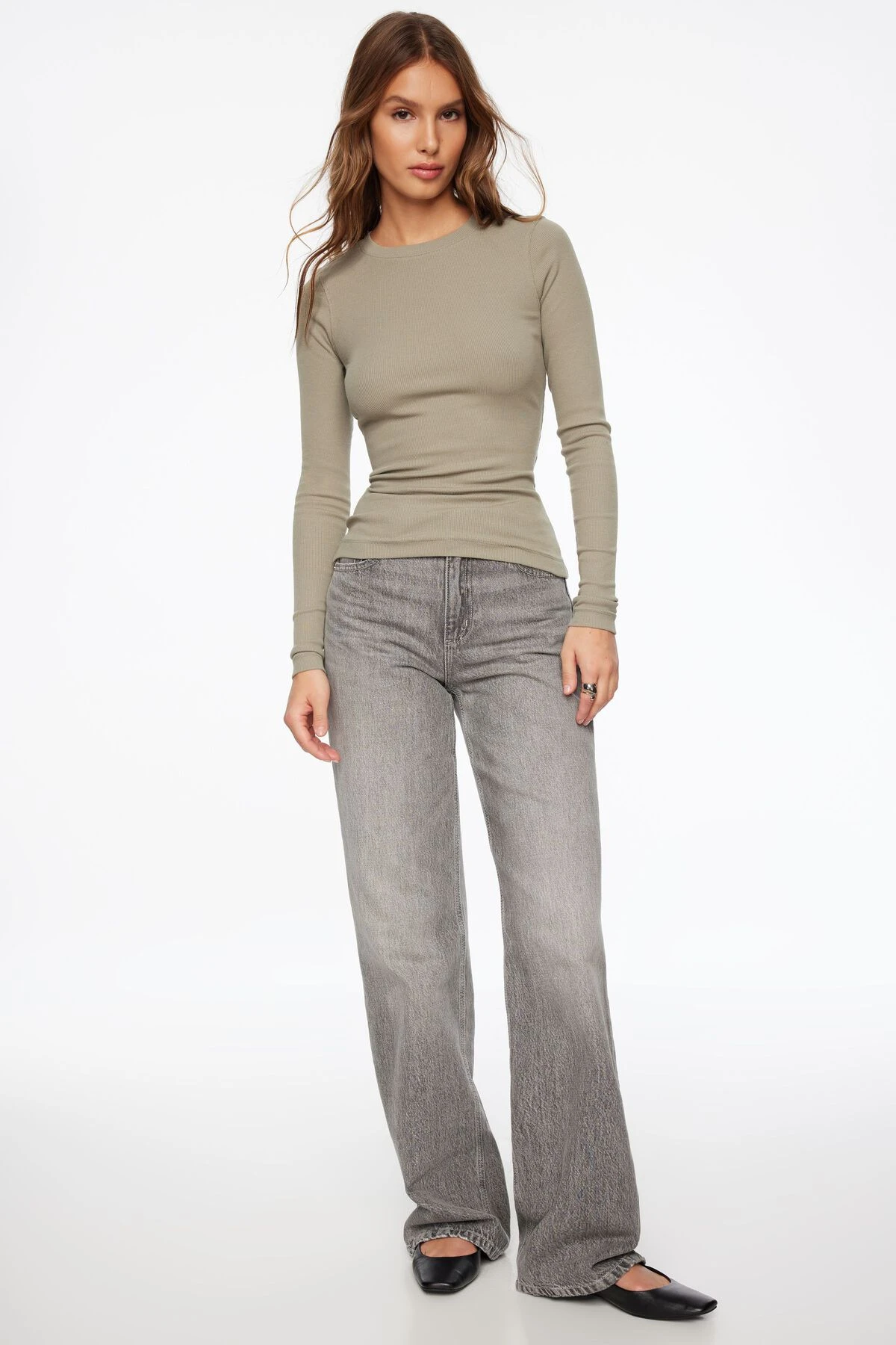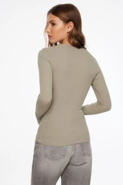 Dynamite Tedi Long Sleeve Crew Neck Top In Soft Moss Green