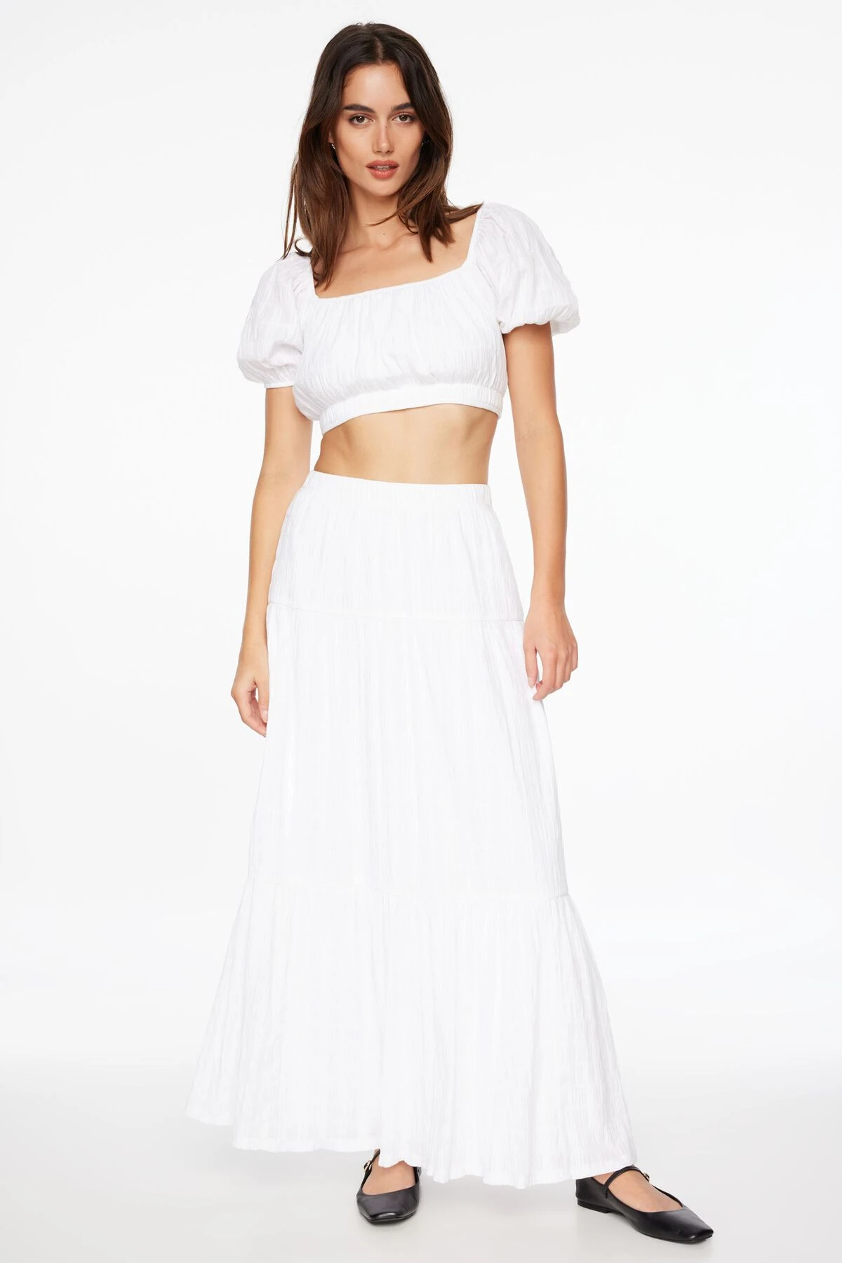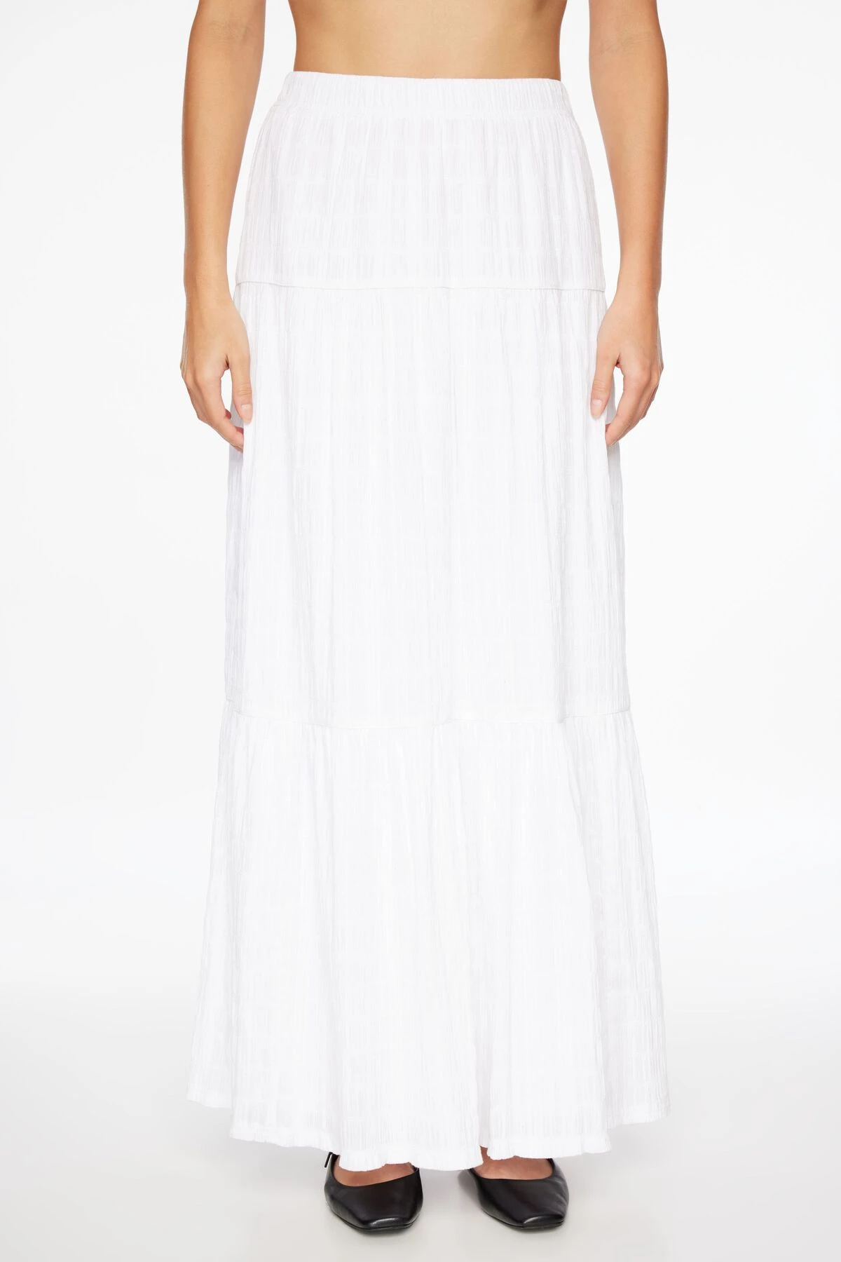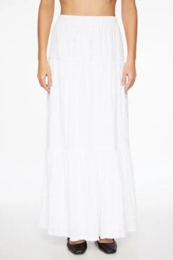 Easy and breezy, this lightweight tiered maxi skirt is designed with a relaxed fit for ultimate comfort.