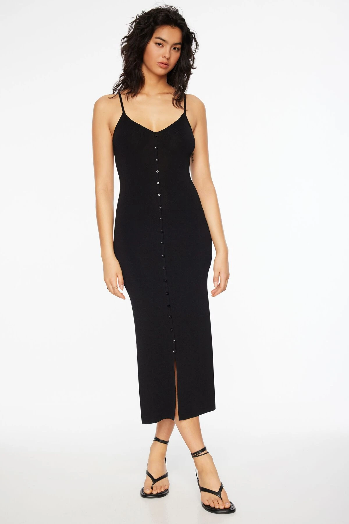 Dynamite V-Neck Button Down Midi Dress In Jet Black
