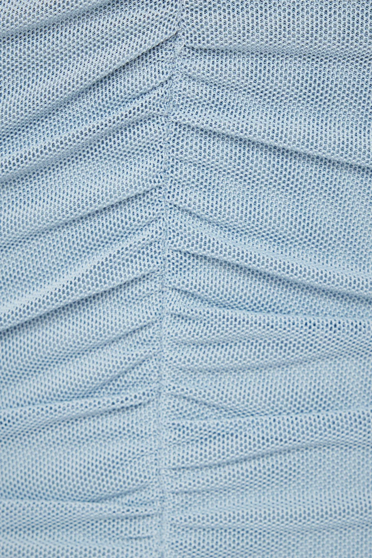 This is a mesh ruched bodysuit – Designed to create an effortless silhouette with a sheer lightweight fabric.