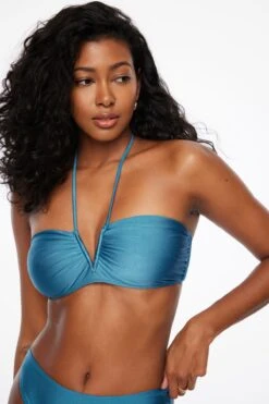 Make a statement with this halter jersey bikini top – Designed with V-shaped hardware and ruching at the chest. Pair it with our high-waisted cheeky bikini bottoms for the ultimate duo.