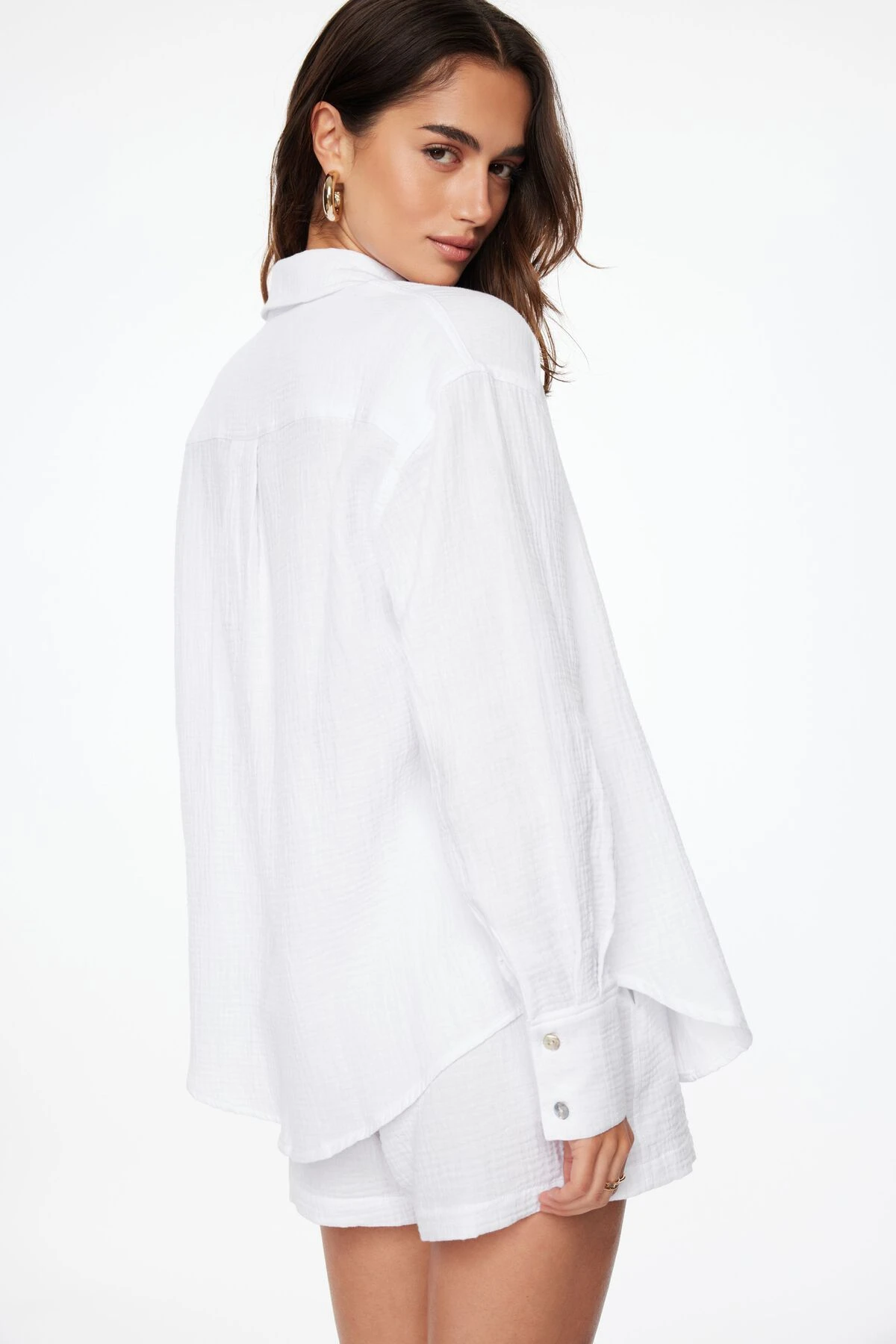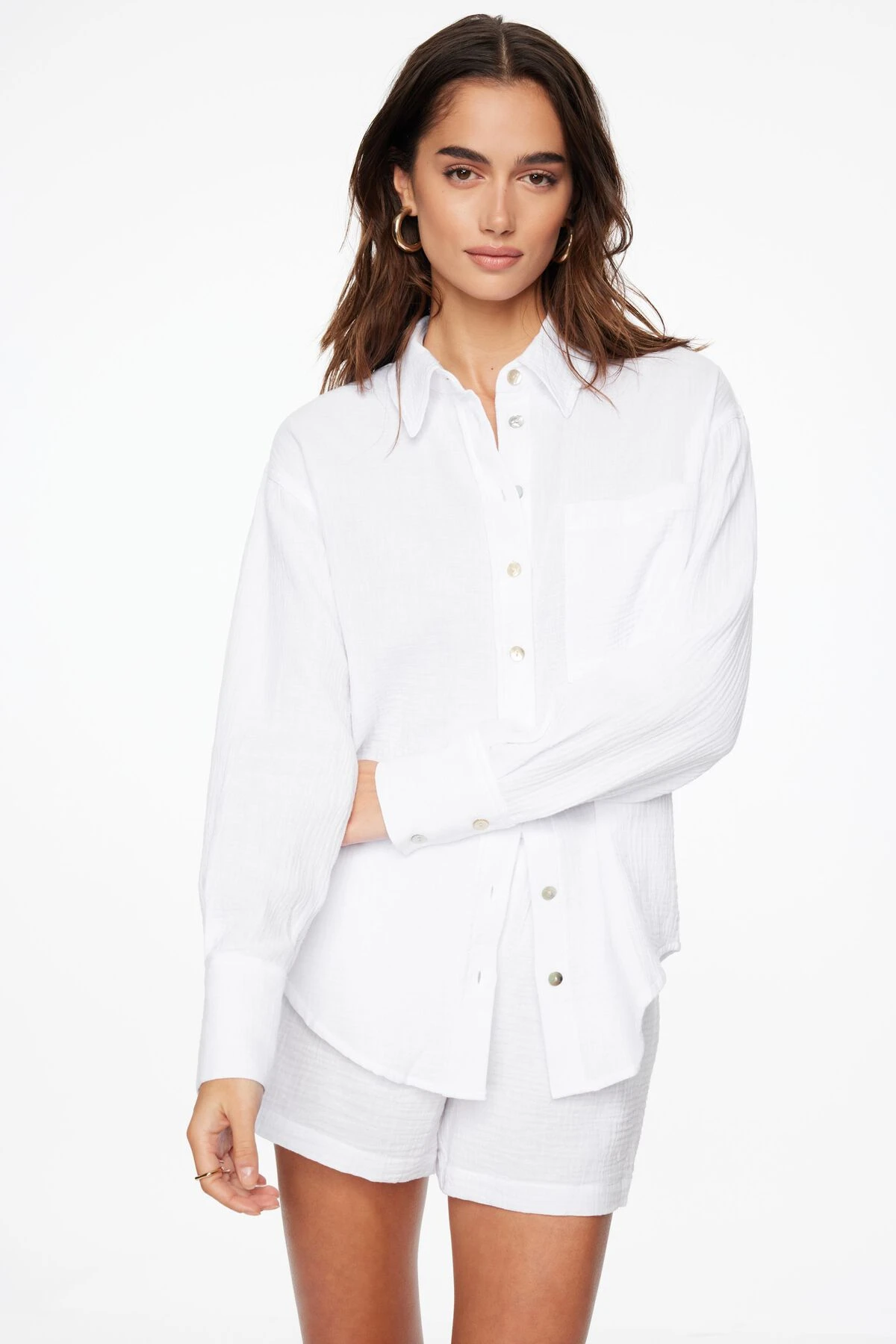 This is a gauze button up shirt – Designed with a lightweight airy fabric.