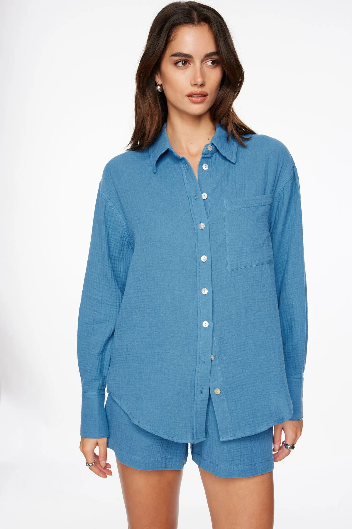 This is a gauze button up shirt – Designed with a lightweight airy fabric.