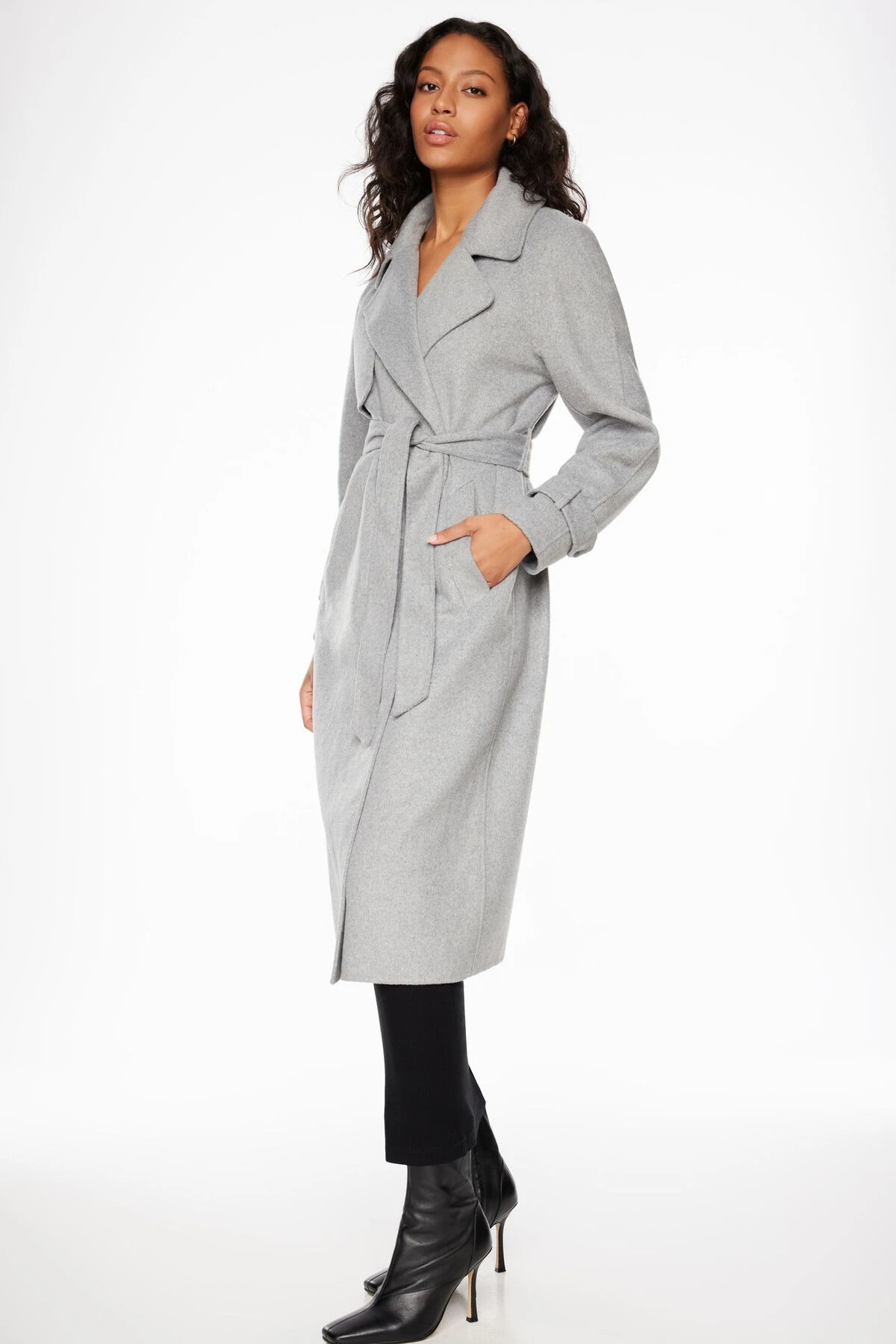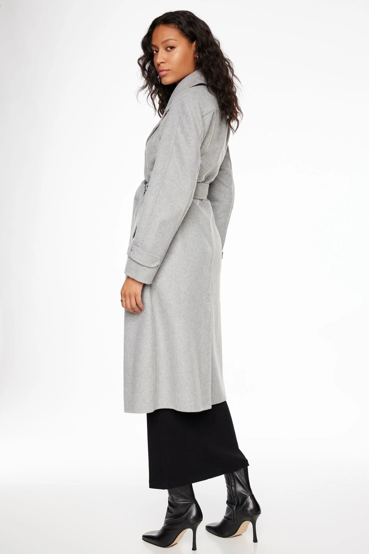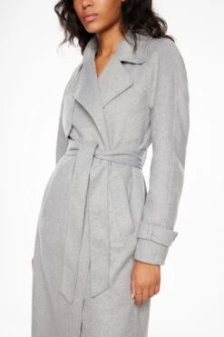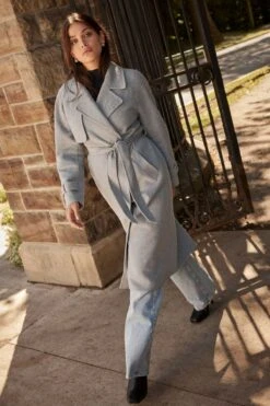 This is a maxi length trench coat – Designed with a lightweight wool fabric.