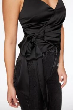 Dynamite Wrap Satin Camisole Blouse In Jet Black - Image 5