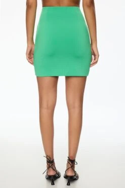 This is a body-con mini skirt made with extra stretch and ruched detail.